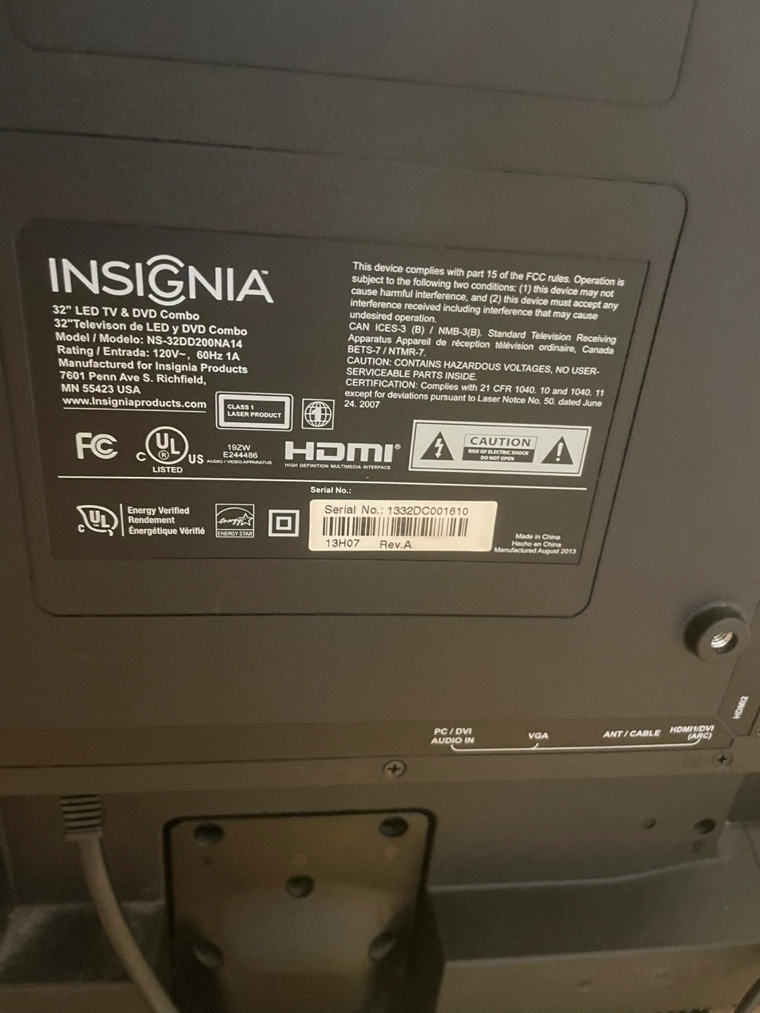 Selling an Insignia 32" LED TV & DVD Combo. Model number: NS-DVD32Q6A14 It's in good working condition! Not a smart TV. No remote.