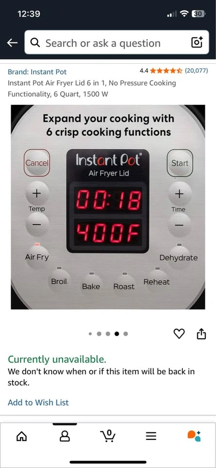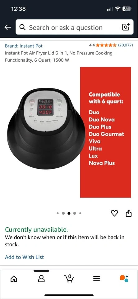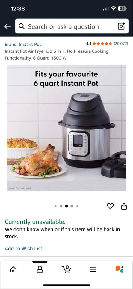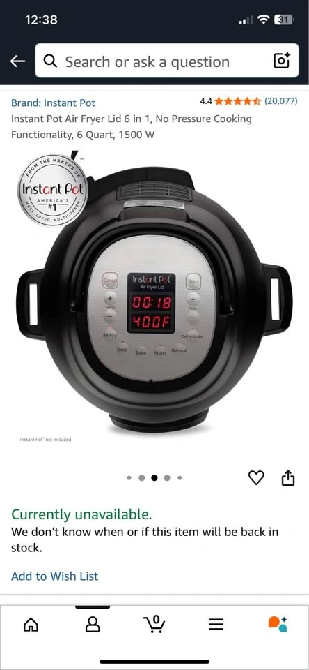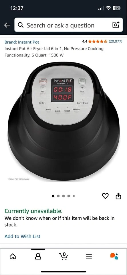 I'm selling an airfryer lid that converts your Instant Pot into an air fryer. I've only used it once before upgrading to an oven with a built-in air fryer option.