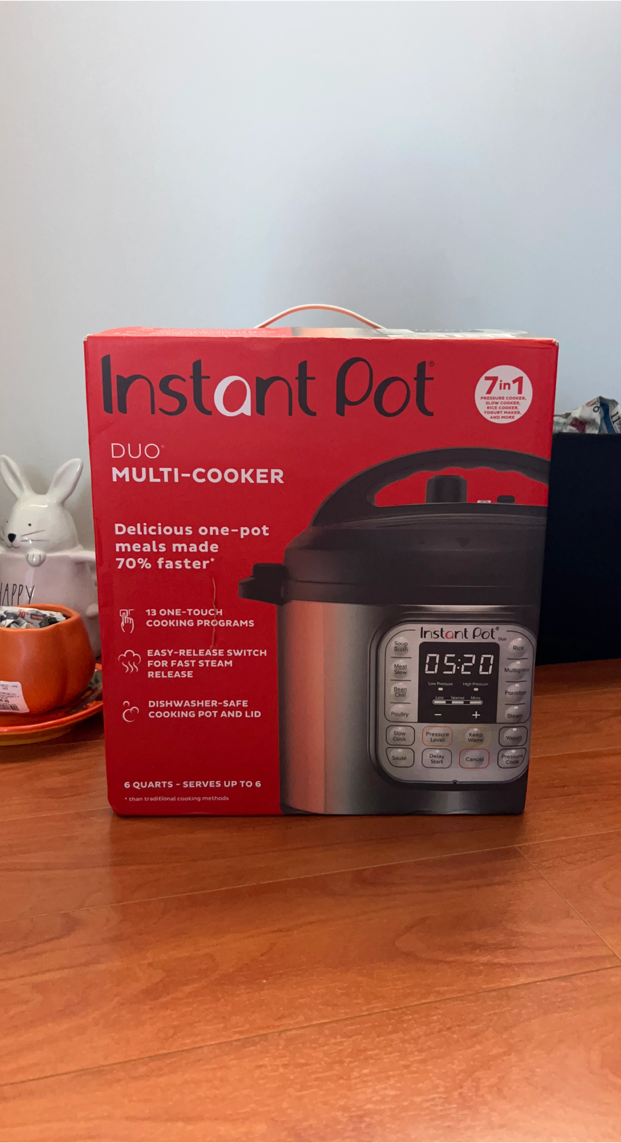 Selling an Instant Pot Duo multi-cooker! This is a 7-in-1 appliance that functions as a pressure cooker, slow cooker, rice cooker, yogurt maker and more It features 13 one-touch cooking programs and an easy-release switch for fast steam release The cooking pot and lid are dishwasher-safe, and it has a 6-quart capacity, serving up to 6 people