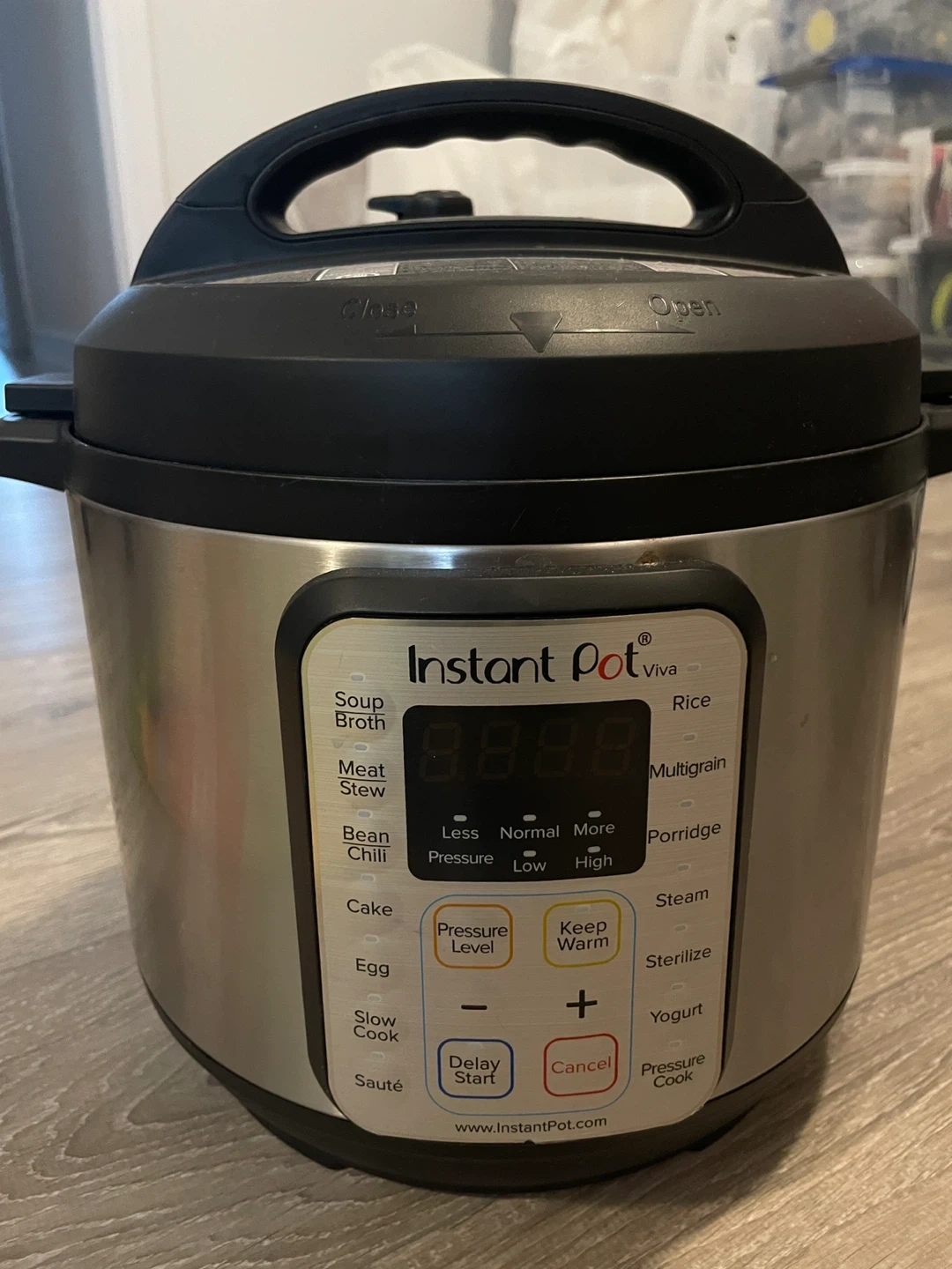 Selling a used Instant Pot Viva pressure cooker. It's in good condition and ready to help you make delicious meals! Features include settings for soup, broth, meat, stew, bean, chili, cake, eggs, and more. Also has pressure level and keep warm functions