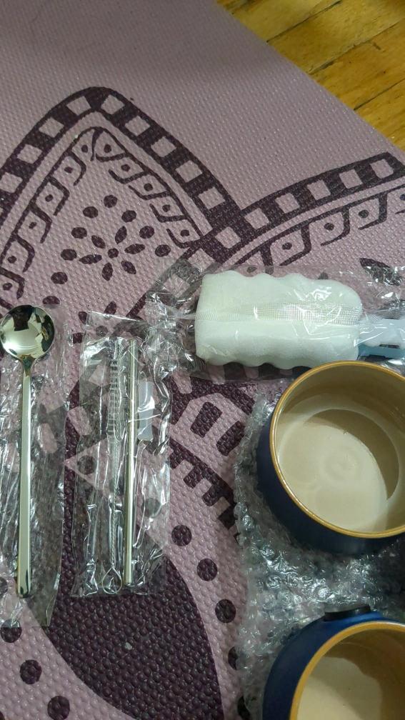 Selling a brand new insulated coffee mug set! The box says it's made with 18/8 food grade stainless steel and has double wall vacuum insulation. It's also BPA free, sweat free and has a durable powder coating. Includes a spoon, cleaning brush and other accessories