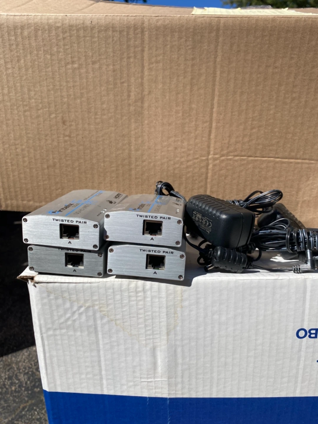 Selling a set of Intelix Balun DIGI-HD-UHR2-S HDMI over Twisted Pair Transmitters. They appear to be in good condition and come with their power adapters. Perfect for extending HDMI signals over long distances using twisted pair cables! 2 sets.
