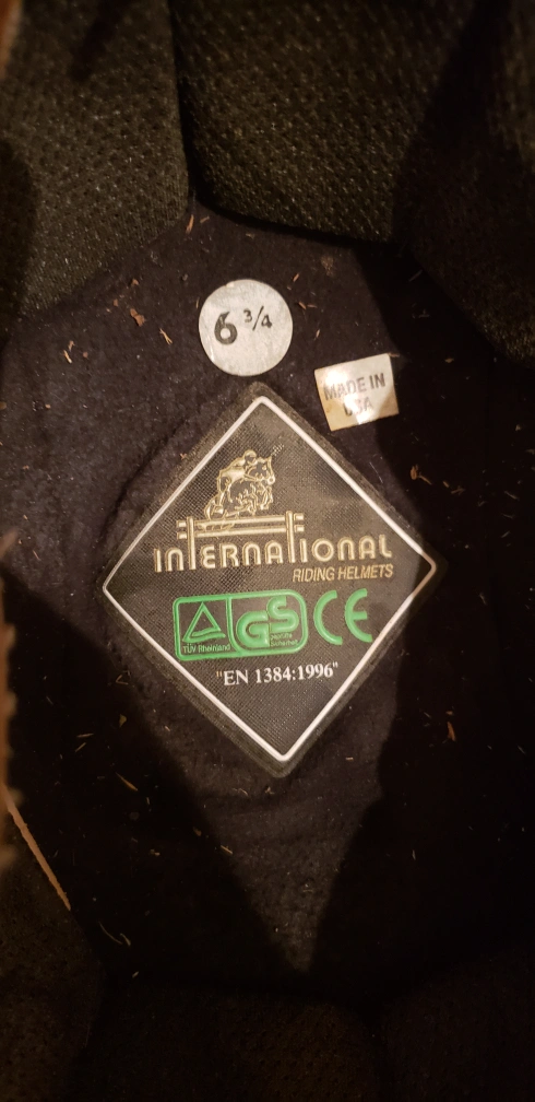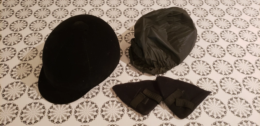 Selling a black riding helmet from International Riding Helmets in size 6 3/4. It comes with a cover and ear muffs!