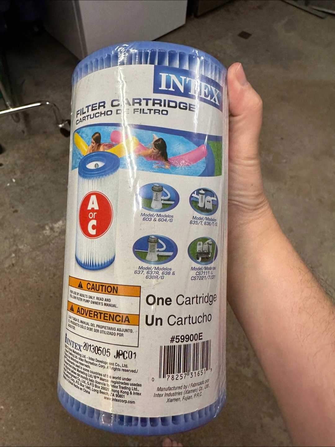 Selling a brand new, unopened box of Intex filter cartridges! These are model #59900E and fit Intex filter pumps 637, 638, 603, 604, 637R, 638R, 636T, 637T, C57111, 71/231, and 71/1231. The box contains 6 filter cartridges.