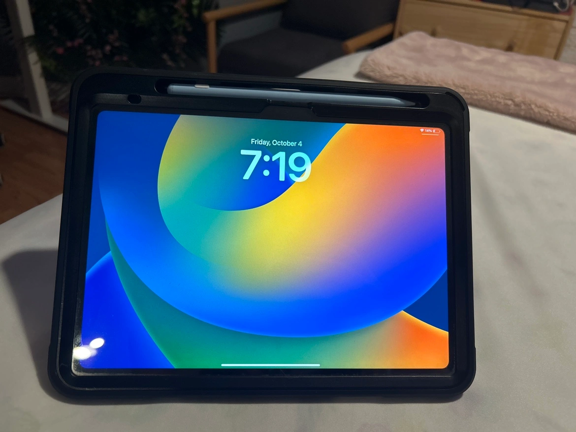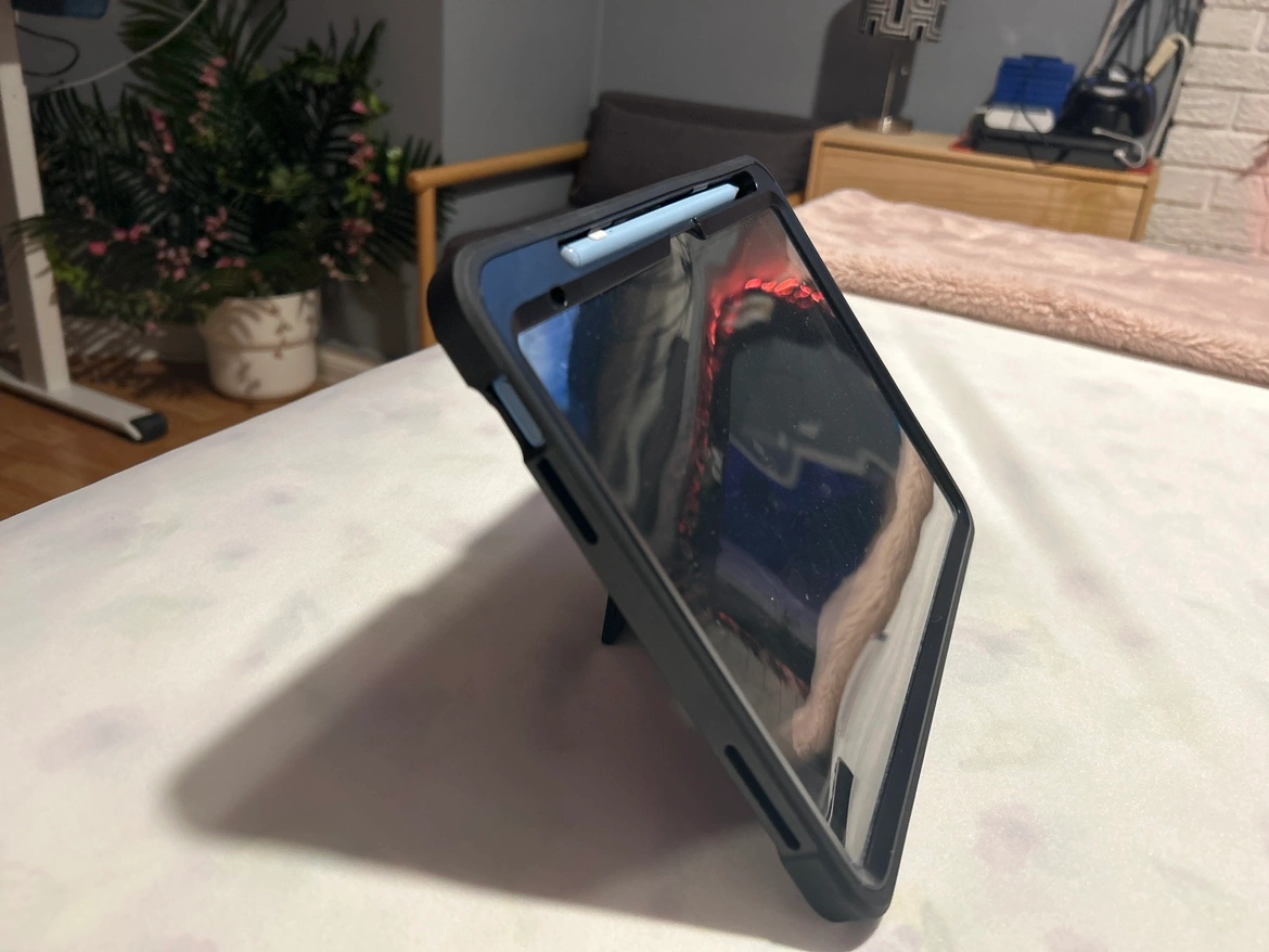 Black iPad 10th generation case with a pencil holder and plastic screen protector iPad and pencil NOT INCLUDED