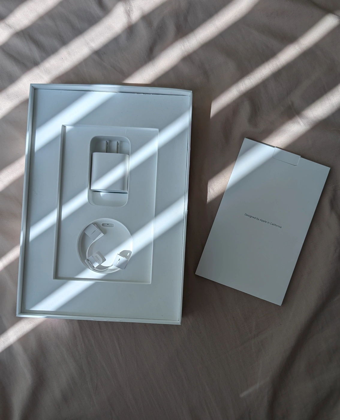 A 9th Generation iPad, selling since I got a new one and no longer need it. No scratches on screen, no dents on corners (see picture), no notable imperfections on back (see pics). Capacity is 256GB as shown in the last picture (will wipe storage before handoff) and can throw in a case seen in one of the pictures. Box, adapter, and apple stickers included, no charging cable. Offers welcome! From a smoke-free home. keywords: iPad 9, apple, like new, lightly used