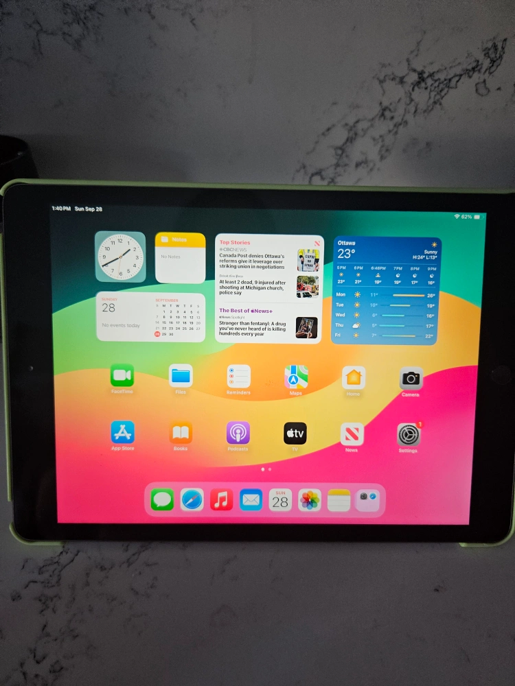 Meet up in whitby at the scoticabank 601 victoria street w Cash only, and yes available 8th gen, 32gb wifi 10.2 screen Bluetooth works, factory reset headphone jack yes Yes charger included No damage, no issues. Don't use it much. Case is worn however. Please check the specs yourself using the details i provided in the ad Note. Will show serial and model number at meet up, in person. No holds limited availability oct 2 I can meet at 5pm