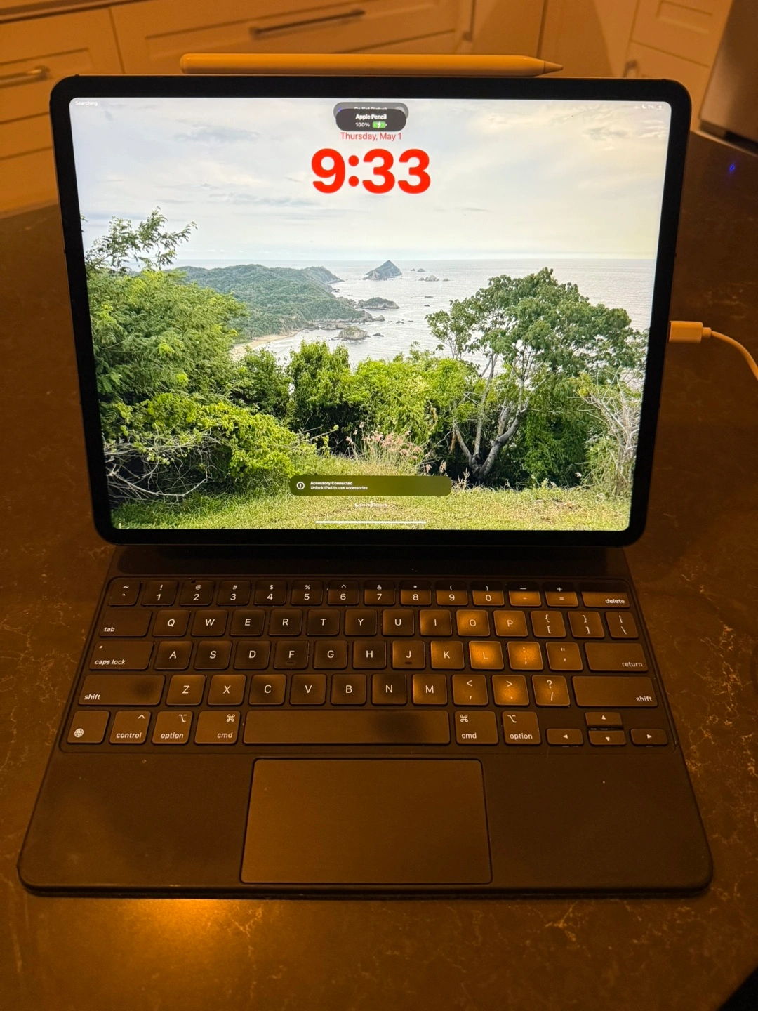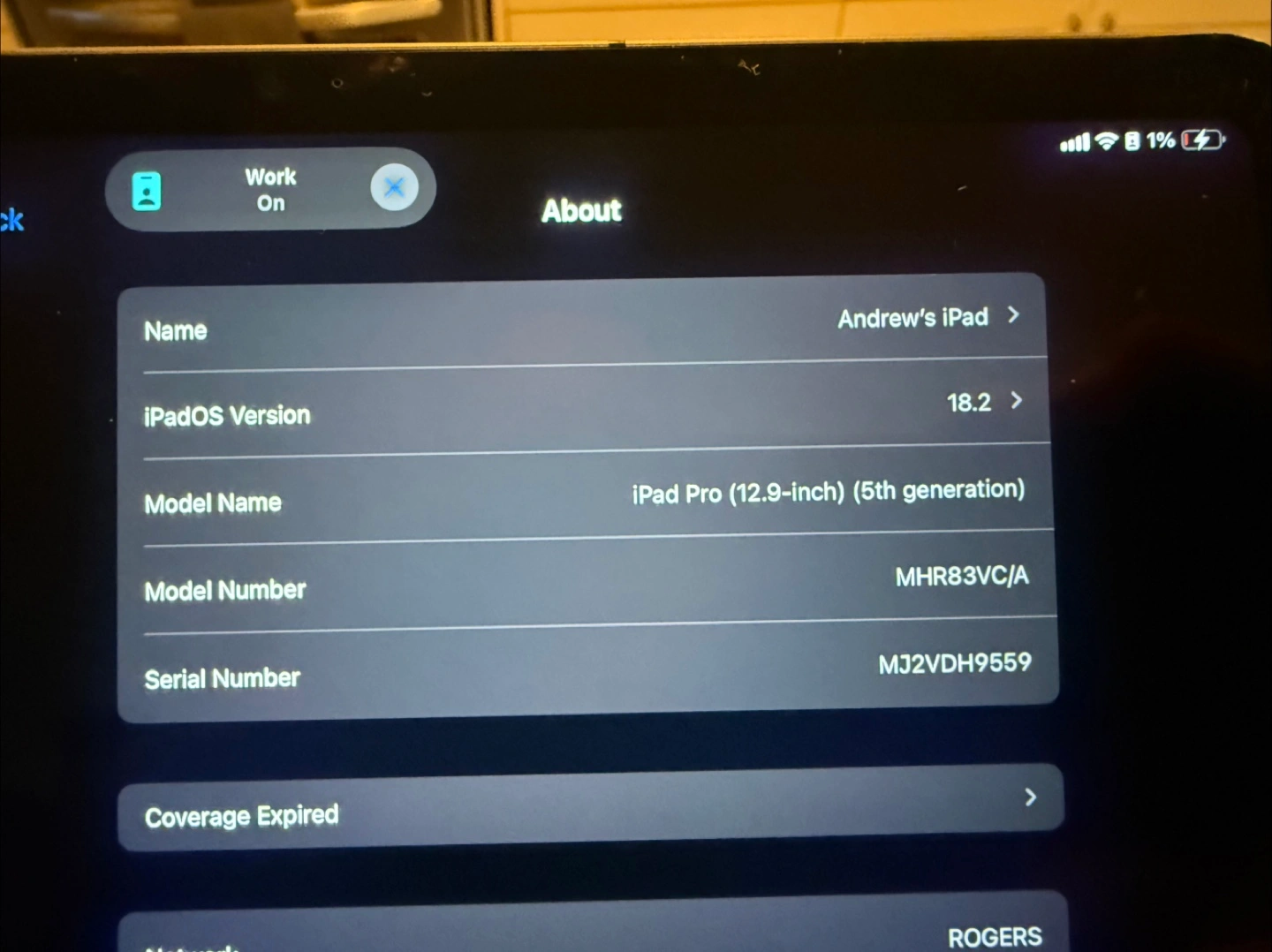 iPad Pro 12.9-inch 5th generation. Includes keyboard and Apple Pencil. Model number MHR83VC/A. iPadOS version 18.2. Good condition. Selling because of upgrade. 512GB