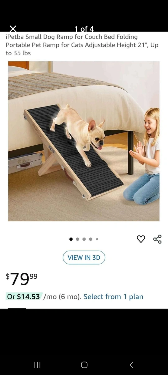 Looking to help your furry friend get onto the couch or bed? This iPetba small dog ramp is the perfect solution! It's designed for dogs (and cats!) up to 35 lbs. The height is adjustable, making it suitable for different furniture heights. It's also portable, so you can easily move it around the house.