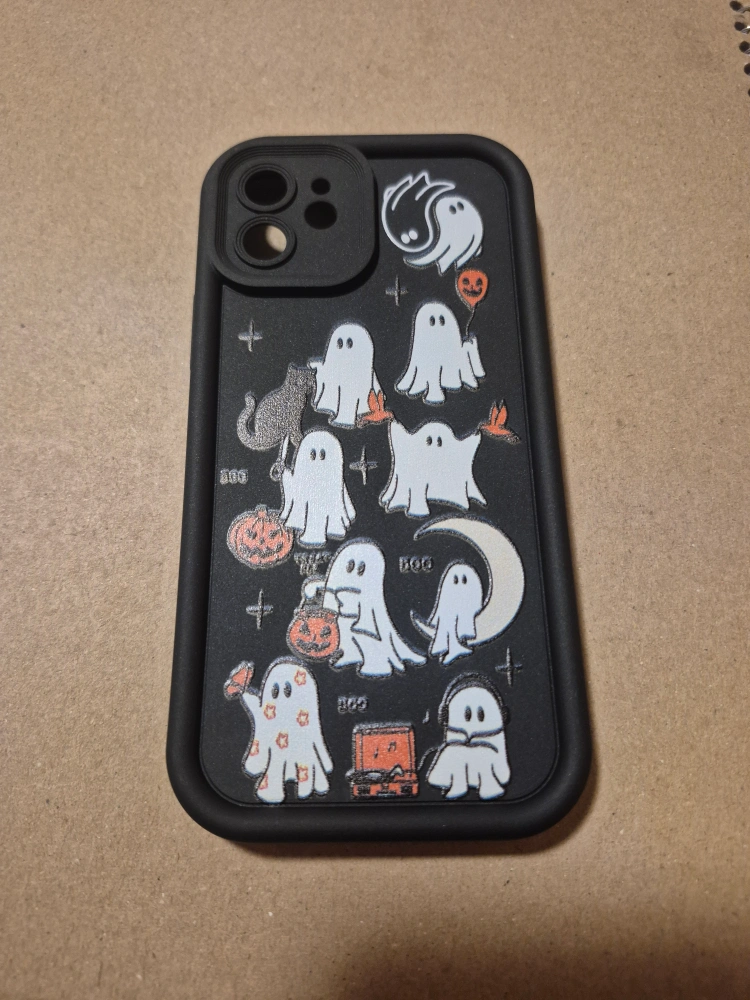 Selling a black phone case for iPhone 12 It is new and in great condition. Halloween theme with ghost design.