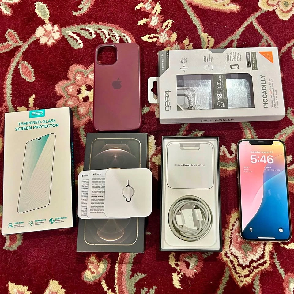 Selling my iPhone 12 Pro (Gold, 256GB, Unlocked) in excellent condition as I’m upgrading to a newer model. Always protected with a tempered glass screen protector and cases since day one. ⸻ 🔑 iPhone 12 Pro Features: • Unlocked – works with any carrier worldwide 🌍 • Dual SIM (Nano SIM + eSIM) – convenient for travel or work/personal numbers 📲 • 256GB storage – plenty of room for photos, apps & 4K video 📸 • Super Retina XDR display – brilliant, edge-to-edge OLED 🌟 • A14 Bionic chip – smooth, fast performance ⚡ • Triple Pro Camera System (Wide, Ultra-Wide, Telephoto) + Night Mode & 4K Dolby Vision HDR video 🎥 • Face ID – secure unlock & Apple Pay 🔒 • 5G ready – faster browsing and streaming 📶 • Ceramic Shield front – tougher than any smartphone glass 🛡️ • IP68 water & dust resistance – up to 6m for 30 minutes 💧 • MagSafe compatible – supports snap-on wireless charging & accessories 🔄 ⸻ 📦 What’s Included: • Original Apple box with SIM eject tool & paperwork • USB-C to Lightning cable (slightly frayed at connector end but fully working) Premium Cases: • Gear4 Piccadilly Black Case – 13ft drop protection with D3O®, slim clear design, boxed 🛡️ • Apple MagSafe Silicone Case – Prune colour, soft-touch finish, MagSafe ready 🍇 • Gear4 Clear Case with Black Sides – slim, durable, stylish, protective 🖤 Screen Protection: • ESR 9H tempered glass – installed since day one (edge-to-edge, anti-fingerprint) • Extra ESR protector in original box with full installation kit including alignment bracket (easy DIY re-apply) ⸻ ✅ Buyer-Friendly Info: • Can test the phone before buying to check functionality • Phone will be fully reset and set up for you to try safely before purchase • Current images show the phone as it is now, before reset • Everything included is shown in the pictures 📸 • I also have other iPhone accessories available if you’re interested ⸻ 💰 Price: C$550 (Reduced to $450) 📍 Pickup in NW Calgary (T3L1Y5) 💵 Cash only please ⸻ ✨ A complete premium bundle: iPhone 12 Pro Gold in excellent condition, dual SIM unlocked, with original packaging, three protective cases, and full screen protection kit including the alignment bracket. Perfect for anyone looking for a ready-to-use, well-protected device.