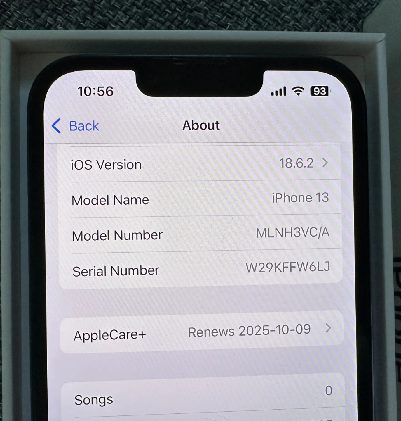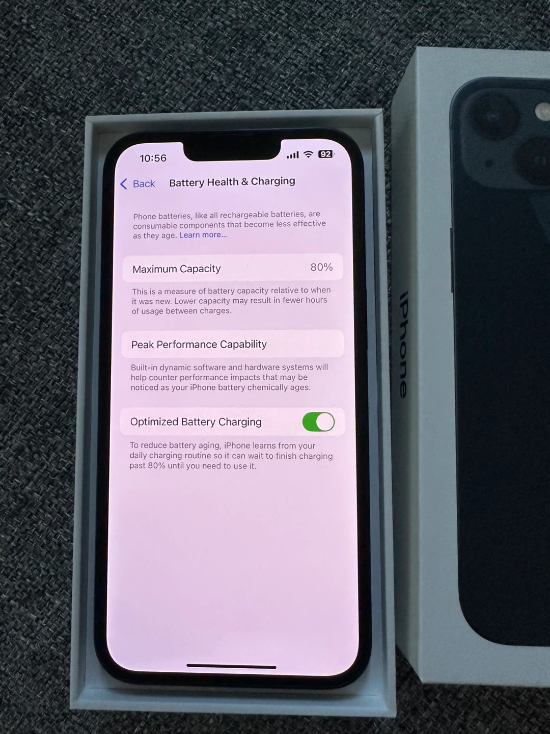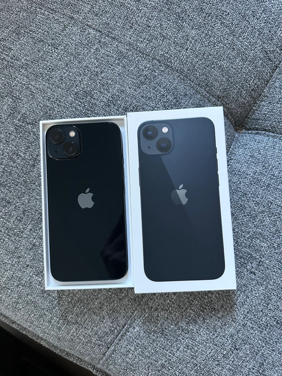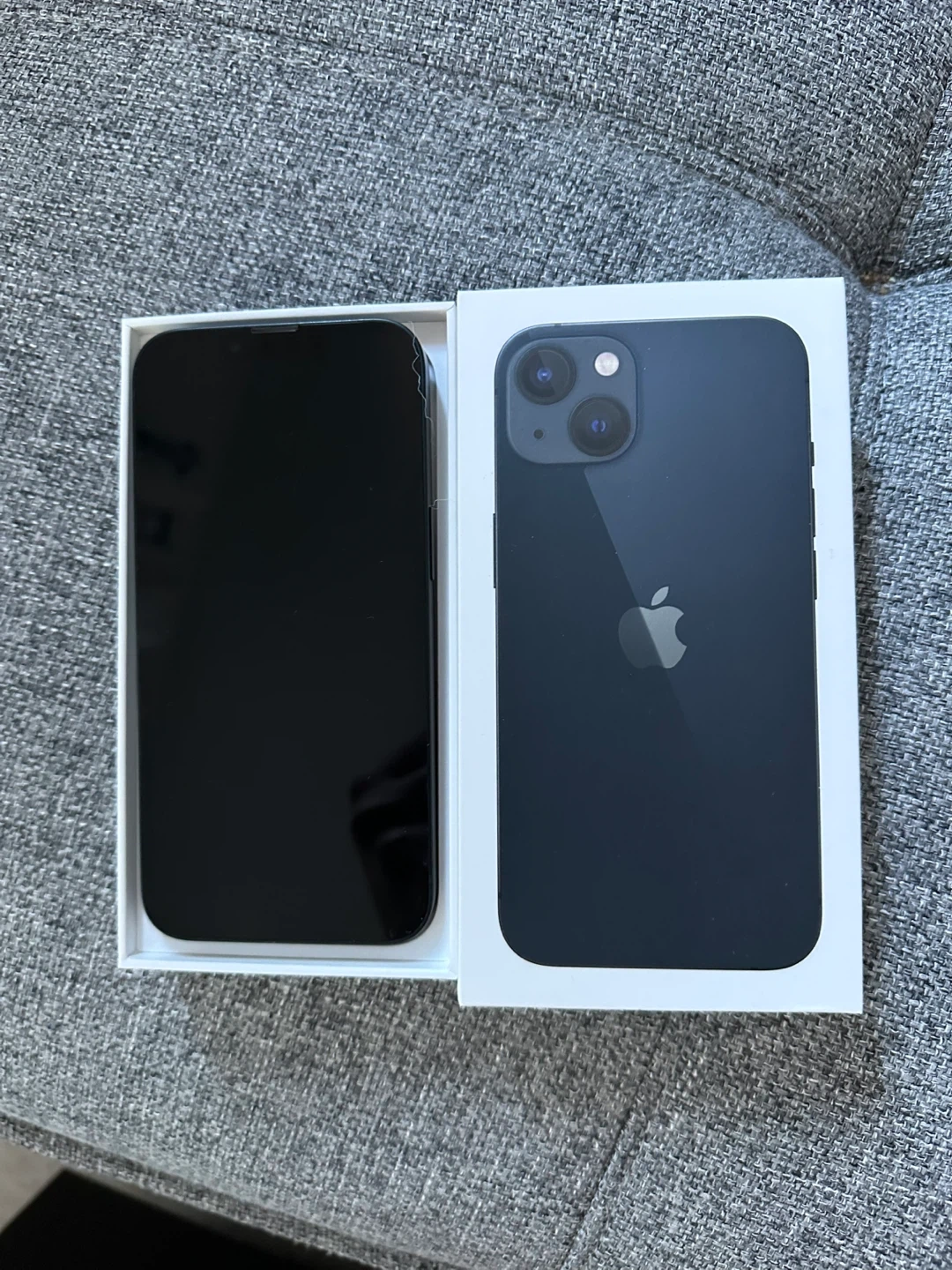 Selling a midnight blue iPhone 13. It's in great condition! The model number is MLNH3VC/A. The battery health is at 80%. Box included