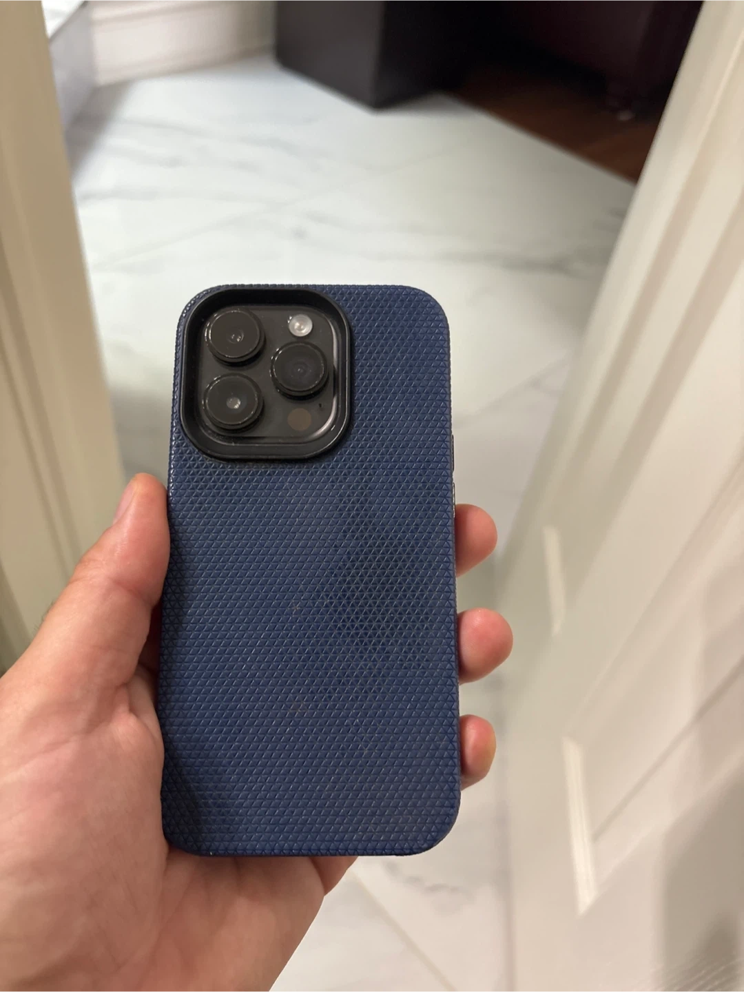 Selling a black iPhone 14 Pro. Please note that the back screen is slightly cracked. Comes with a blue case.