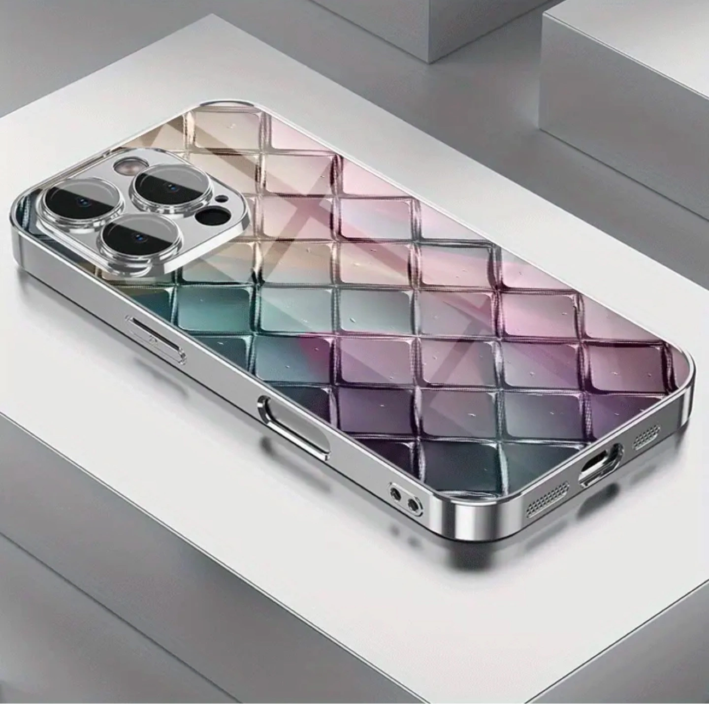 iPhone 16 Pro Max Case - iridescent diamond pattern