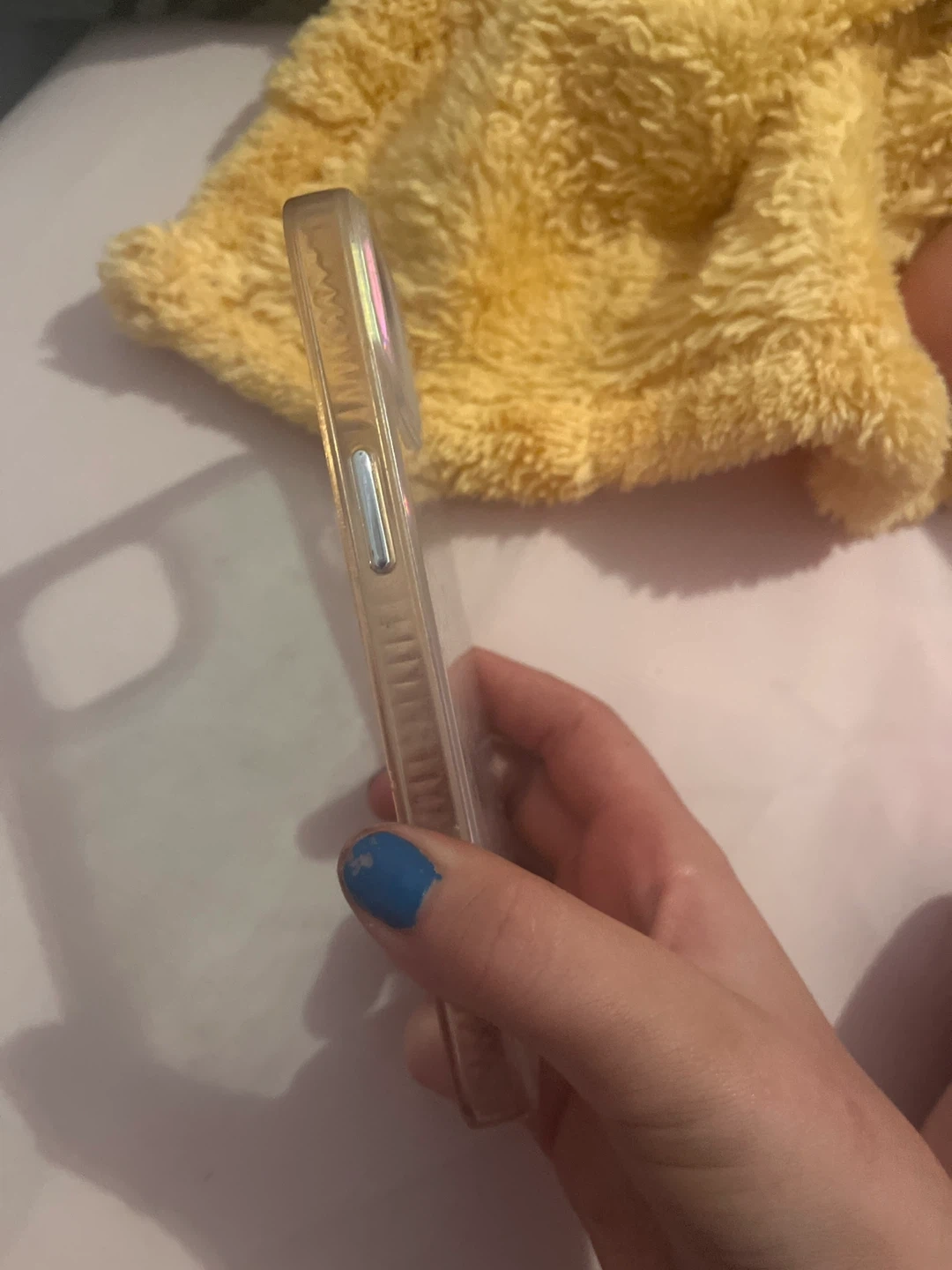 Selling an iridescent iPhone case. It's in great condition and gives off a really cool rainbow effect in the light! It's a slim case, so it won't add too much bulk to your phone