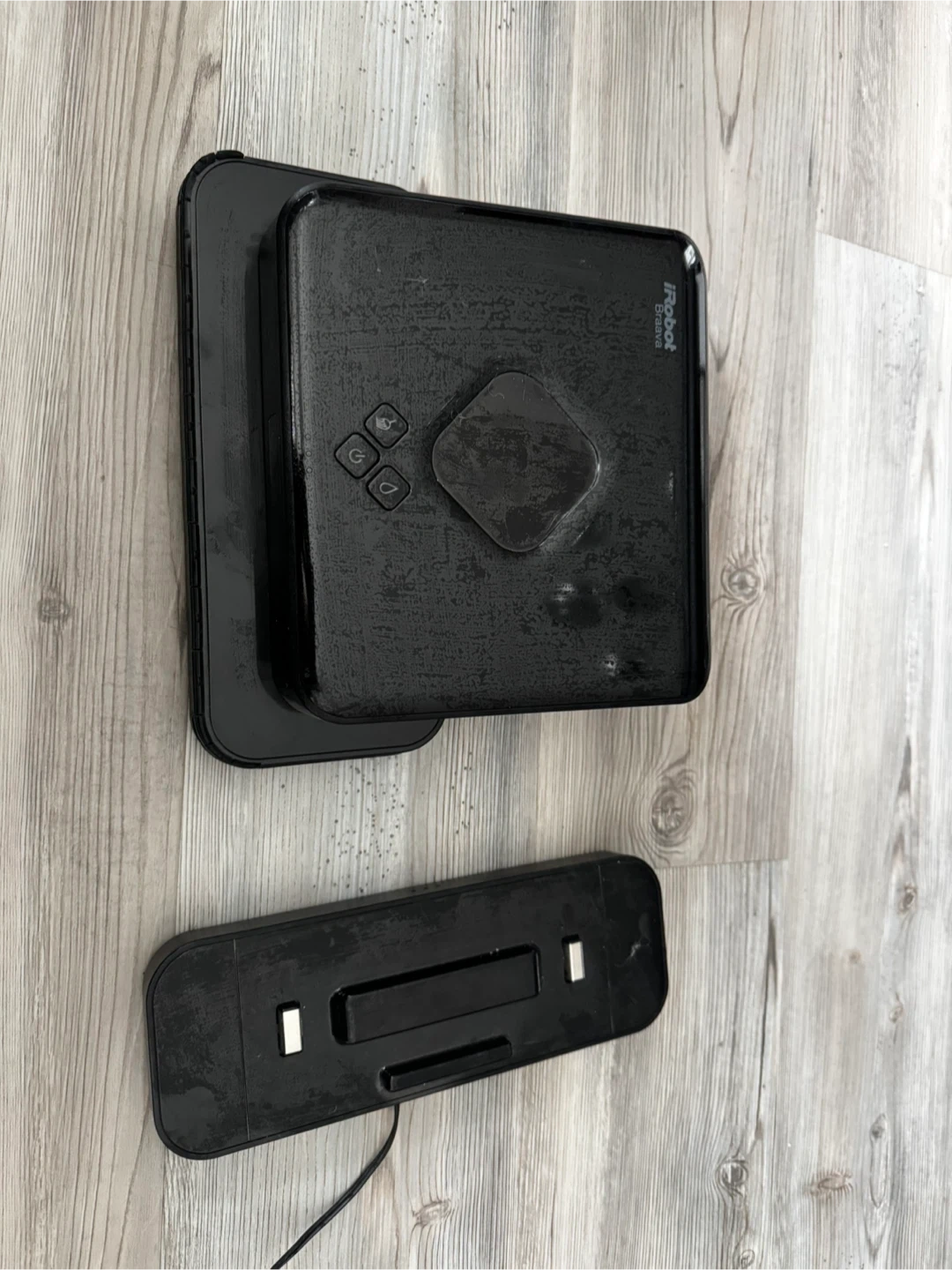 Selling an iRobot Braava Jet 240 mopping robot. It's in good working condition and ready to help keep your floors clean! The Braava jet is designed to mop hard floors, including hardwood, tile, and stone. It's lightweight and portable, making it easy to move around your home. Includes the Turbo Charge Cradle.