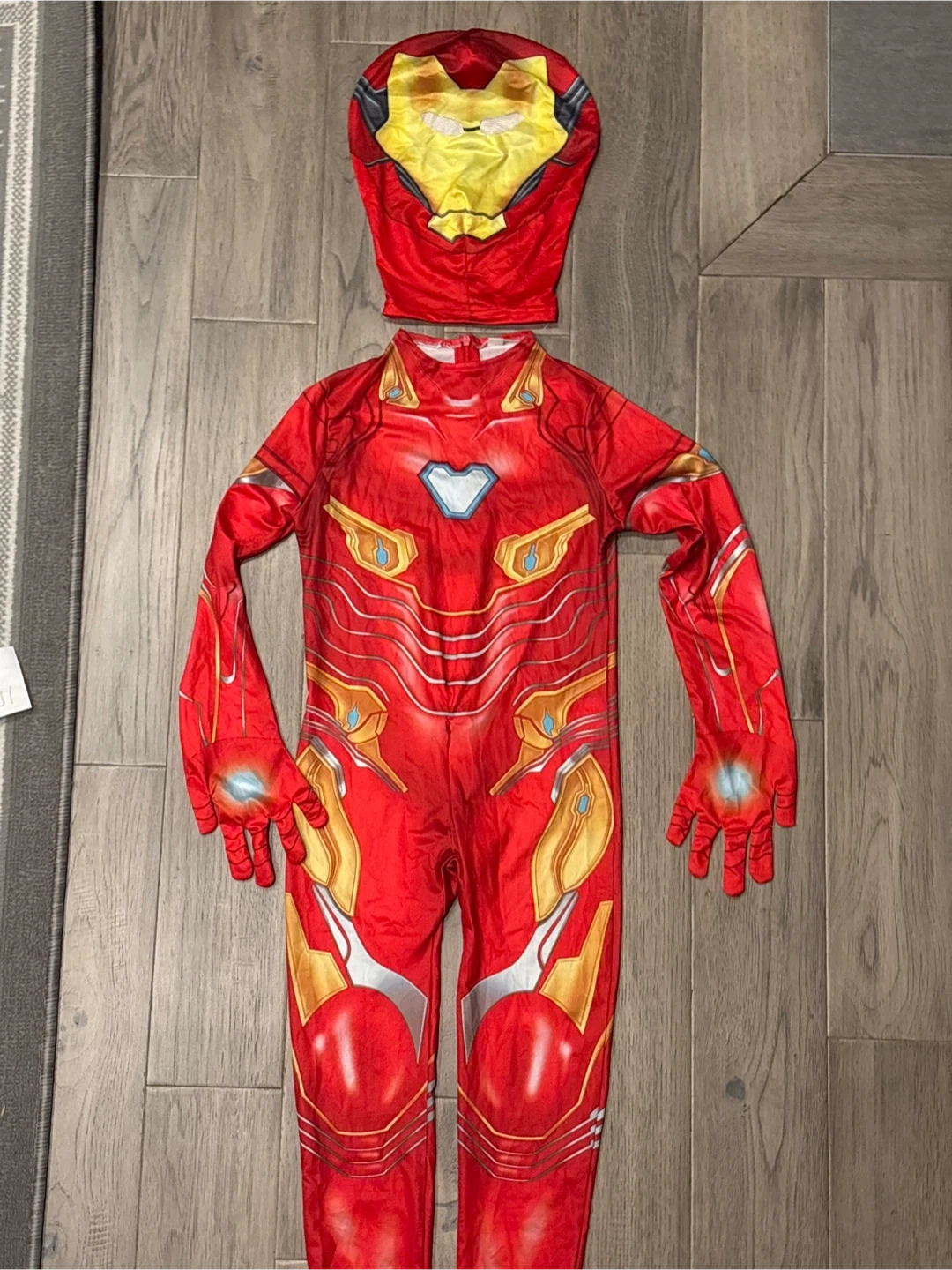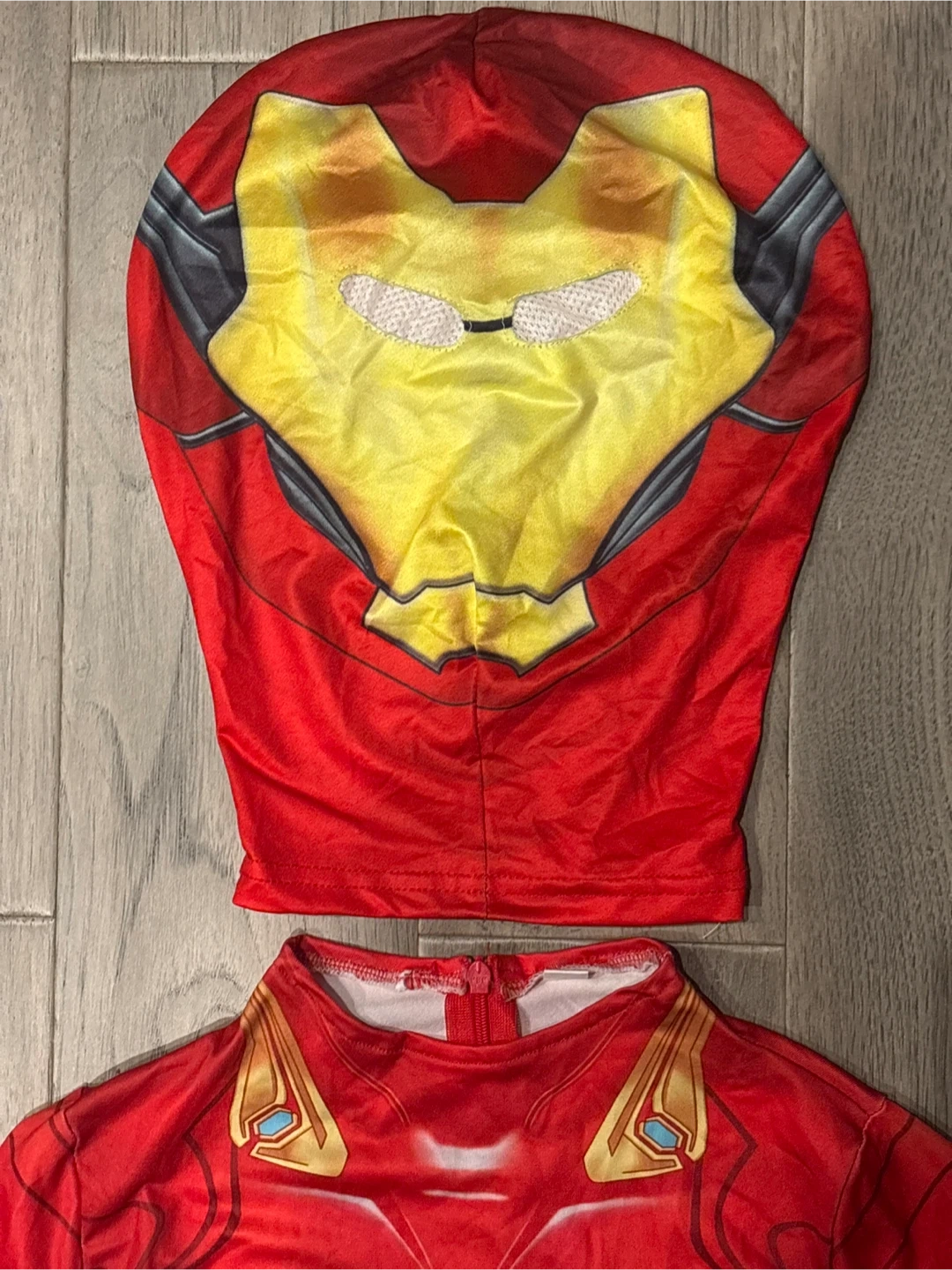 Selling an Iron Man costume! It's in great condition and perfect for Halloween or dress-up. The costume is red and gold and includes a mask and jumpsuit. It's ready for a new superhero!