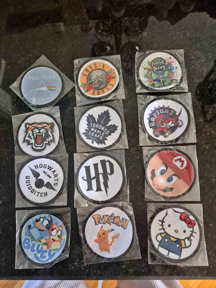 Iron-on Patches. Many designs, characters and themes available. Pick up is on the east Hamilton mountain, Upper Kenilworth and Limeridge area.