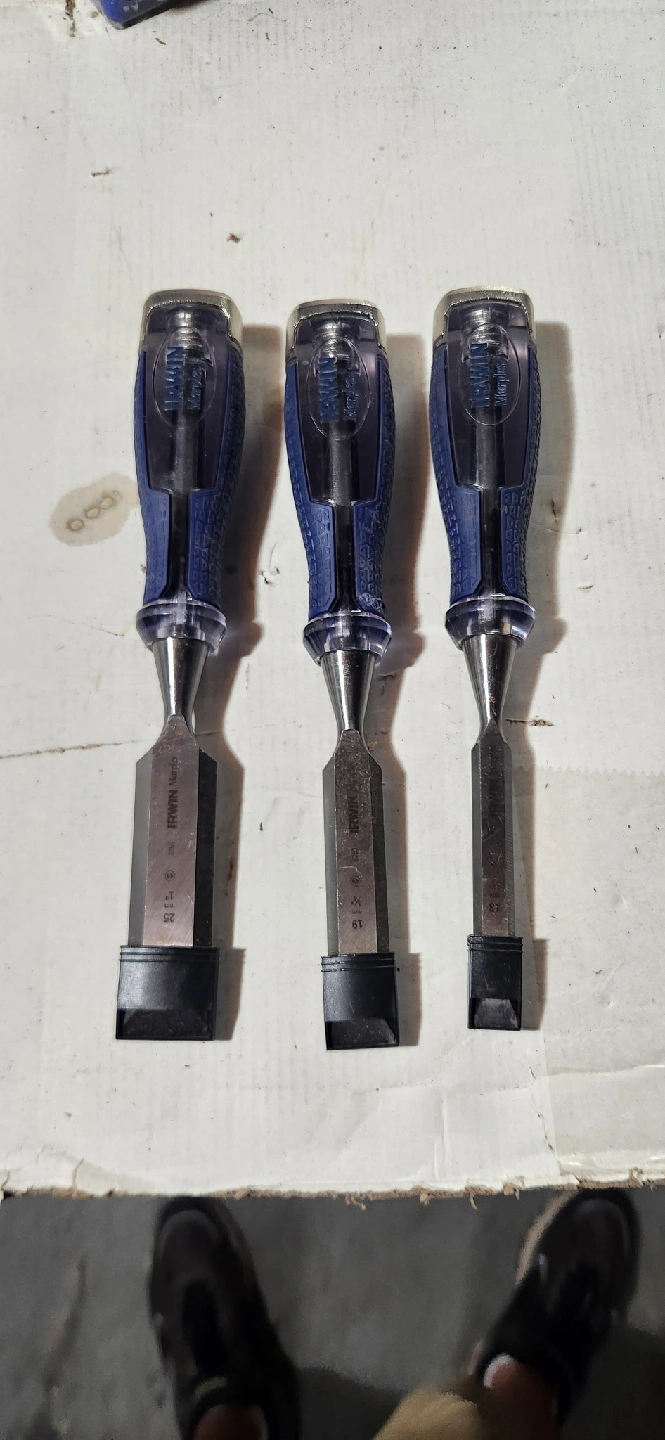 Selling a set of three Irwin Marples wood chisels. They have never been used and are ready for your next woodworking project