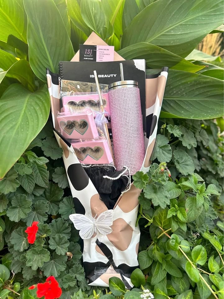 Looking for the perfect gift for a lash lover (or yourself)? Our Lash Bouquet is a stunning mix of beauty, style, and self-care all wrapped in one glam package. Gift cards are available to pre purchase as well. Floral wrapping choices come in the one in the photo, black, blue and purple all with gold accents along the border.
