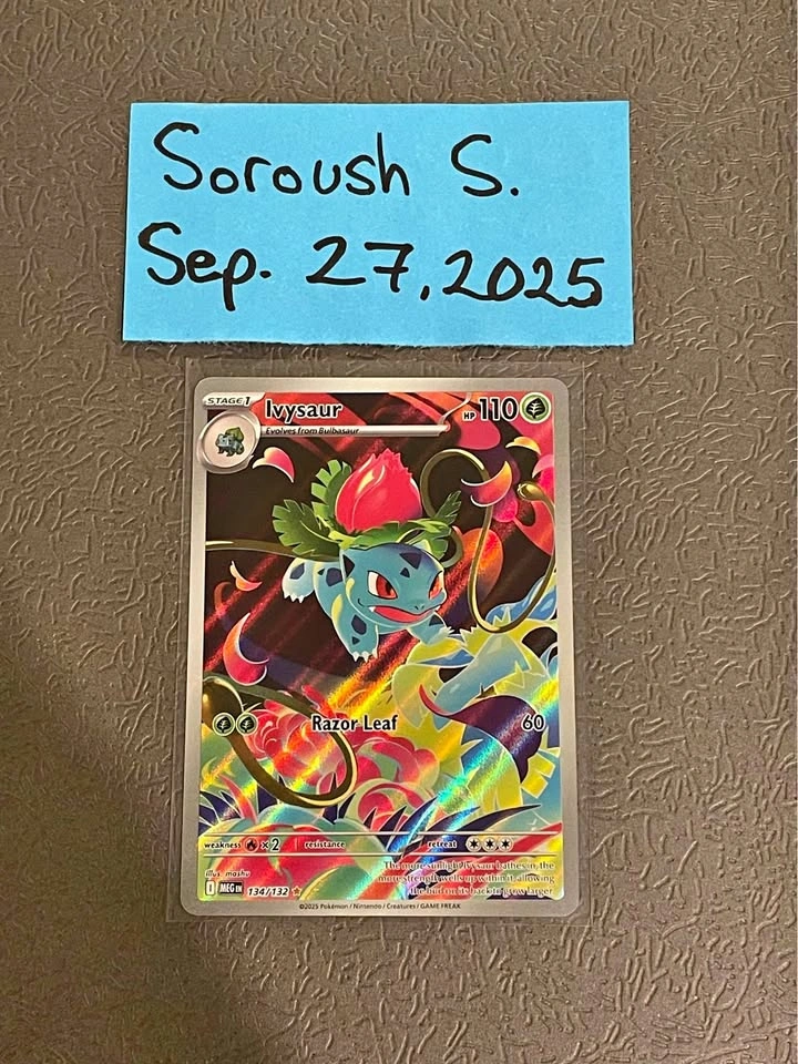Ivysaur from the Mega Evolutions set. Shiny Rare 134/132 Asking $60 MINT condition Meet at Metrotown, Brentwood, Lougheed Mall or Patterson Skytrain Station.