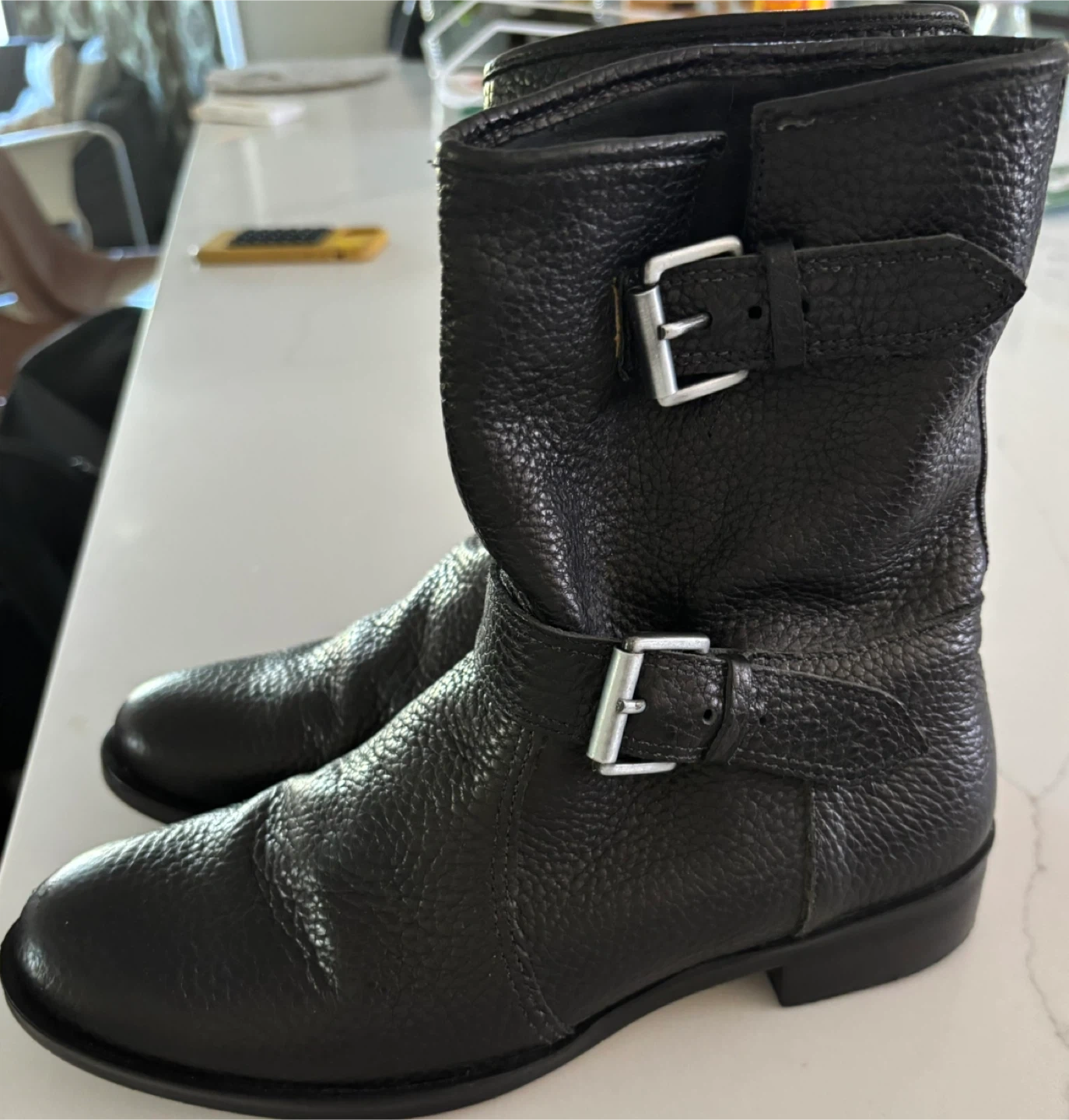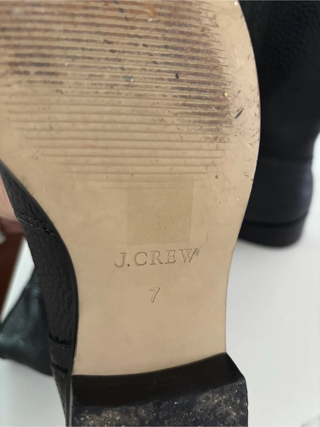 Selling a pair of J. Crew black leather boots in size 7. They have a buckle detail and are in good condition! Perfect for adding a bit of edge to your wardrobe.