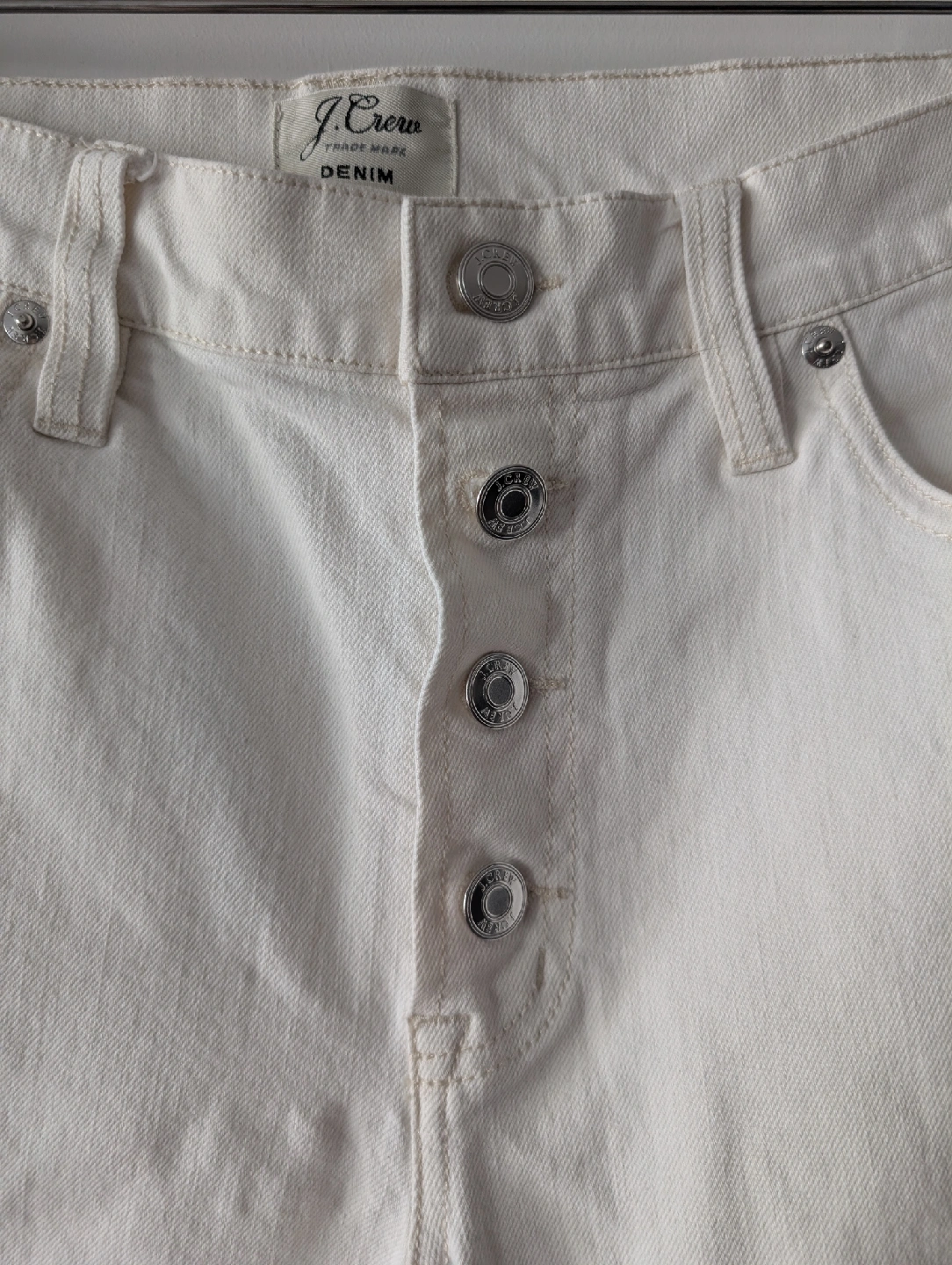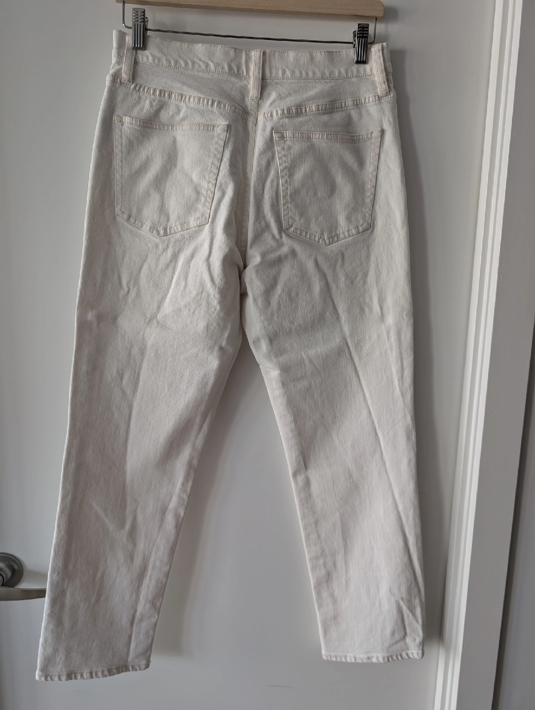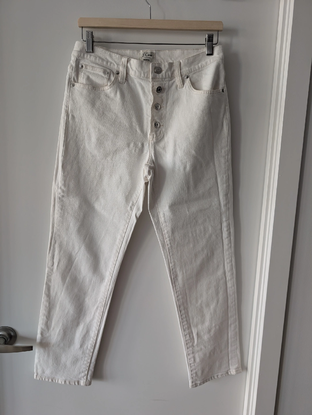 Selling a pair of J.Crew denim jeans in a lovely off-white colour! These are perfect for a casual day out. They are in great condition and ready for a new home - selling just because they are a bit too big for me.