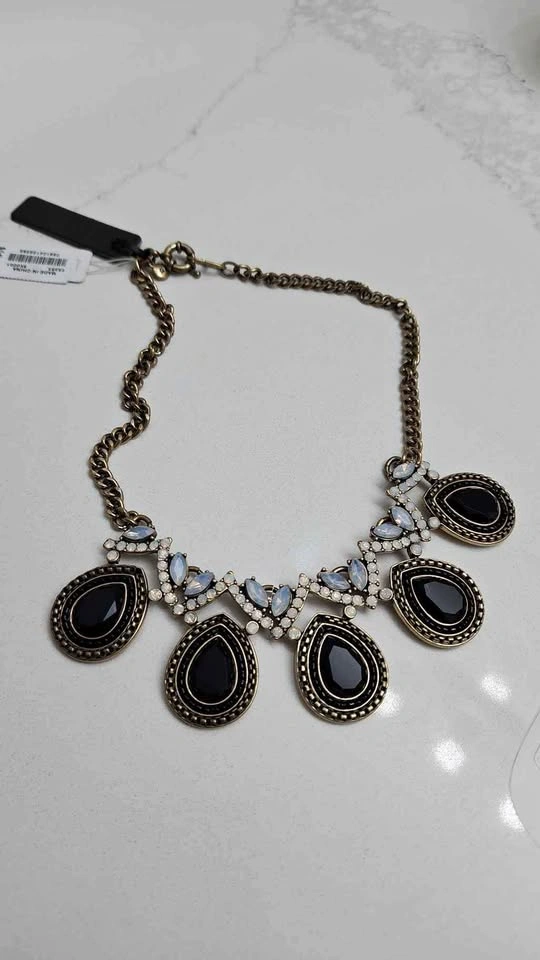 J. Crew Necklace Rhinestone Faux Teardrop Black Stone Bead
