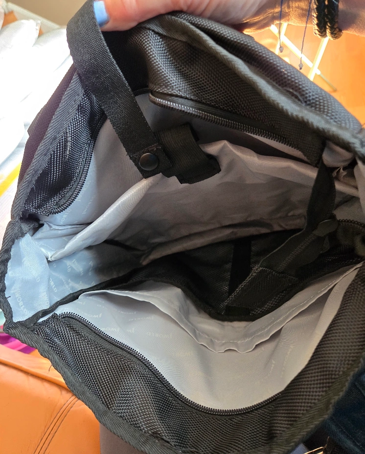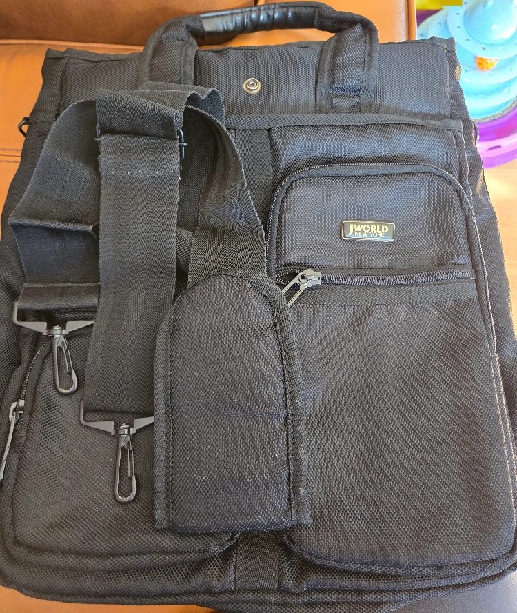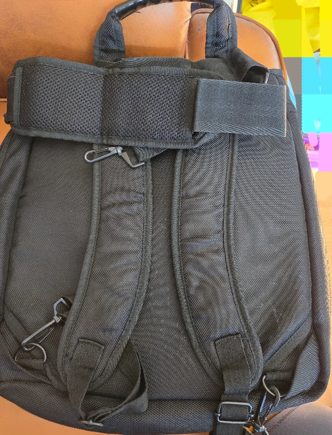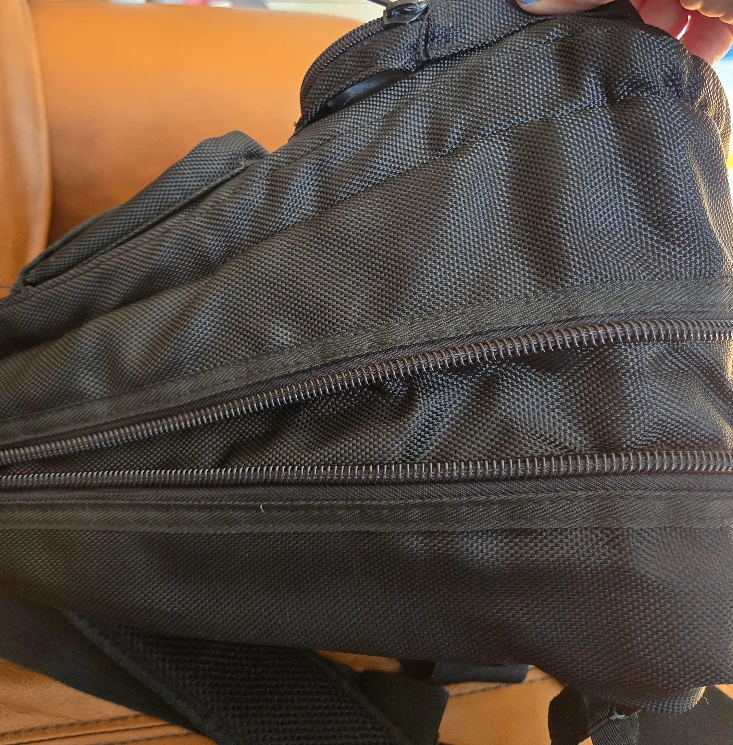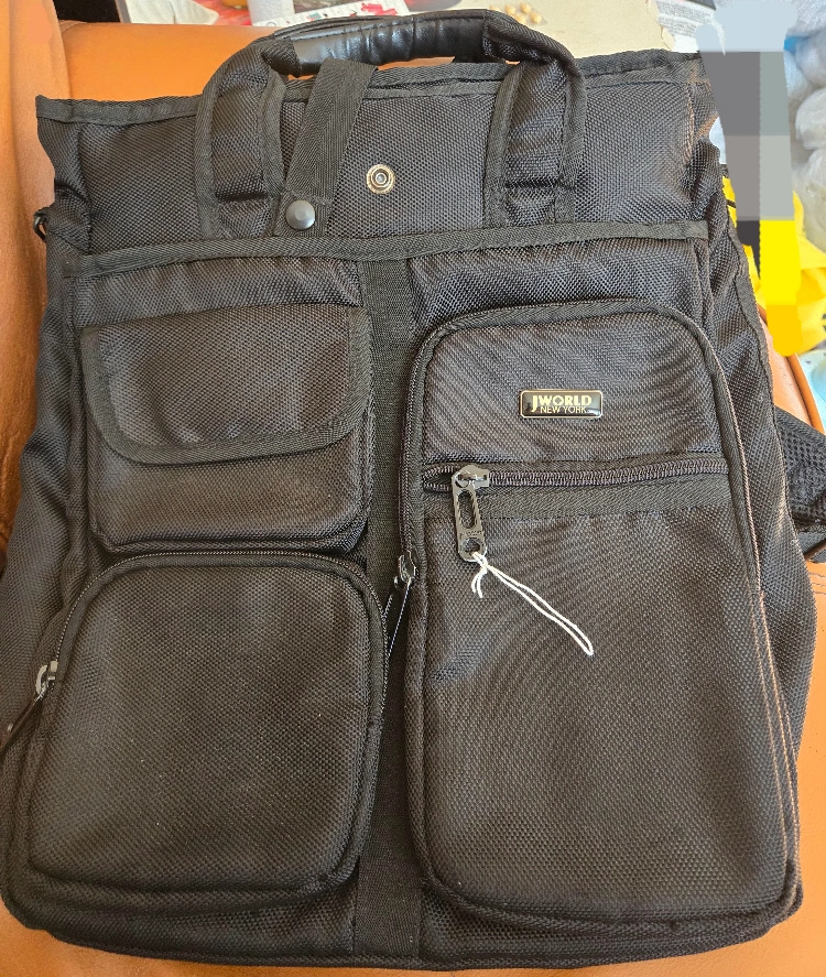 A black backpack with multiple zippered compartments. Also, a top handle and adjustable straps are included. This bag can be your everyday companion, allowing you to go about your day with ease.