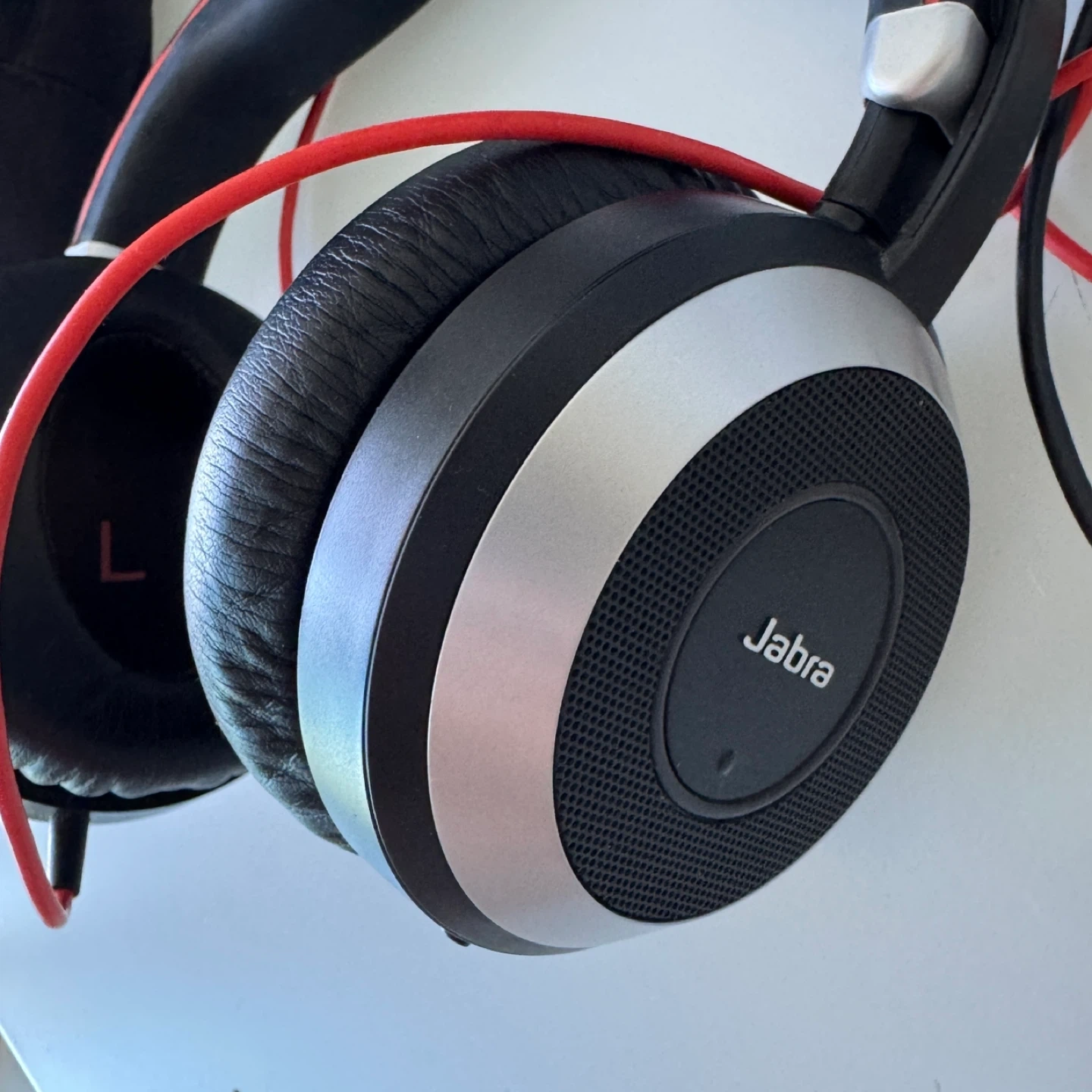 Lightly used Jabra Evolve 80 Stereo headset with built-in microphone and active noise-cancelling (ANC) button. Works via USB as well as 3.5 mm audio jack. The headset folds neatly into its original carry case (included). Well cared for – as shown in the photos, no obvious wear or damage, and everything works perfectly.