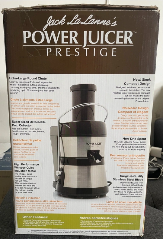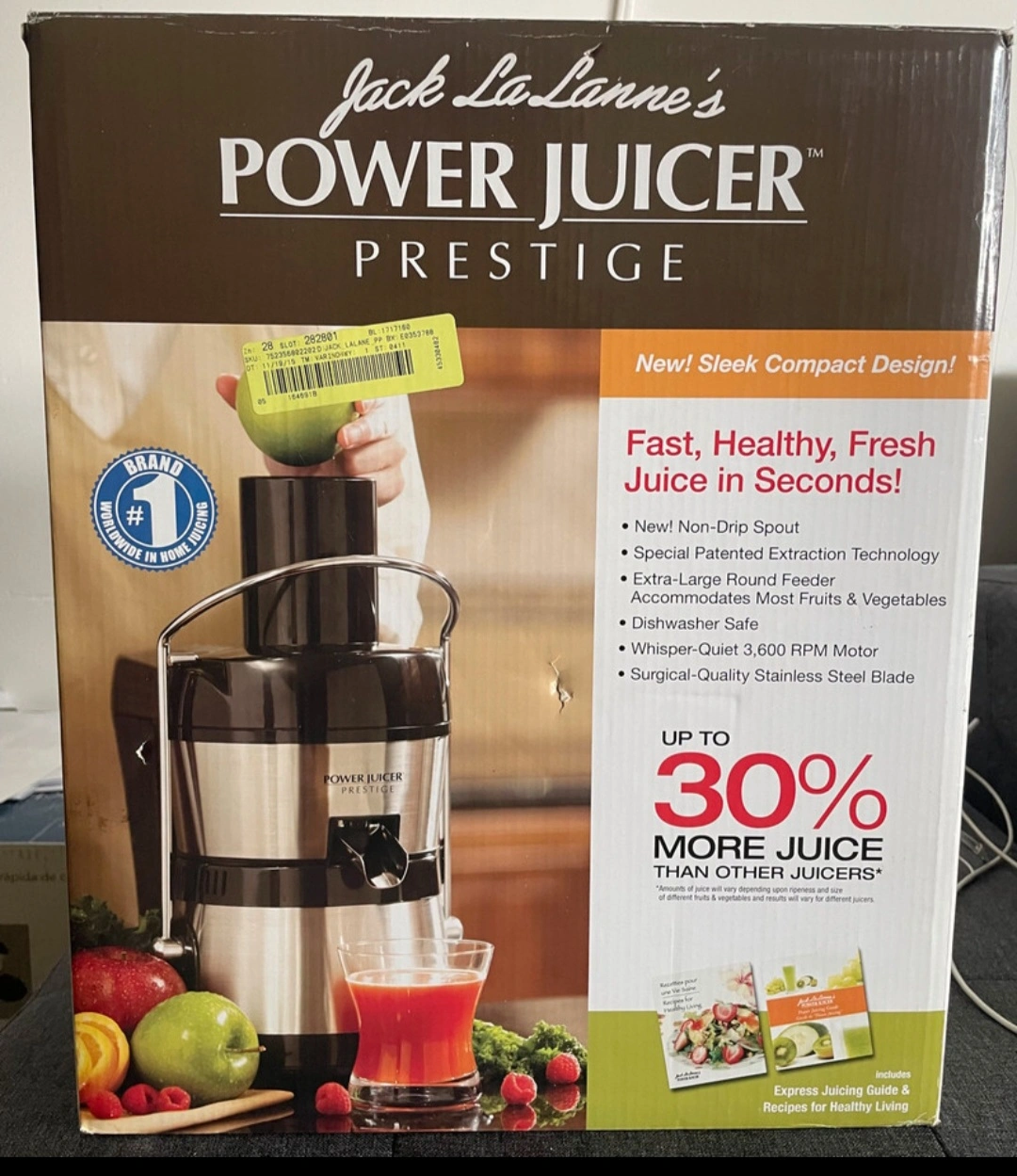A juicer in its original packaging. It includes multiple features for an easy and quick juicing experience. Juicing is a great way to incorporate more fruits and vegetables into your diet in a calming way. (Taste Delicious)