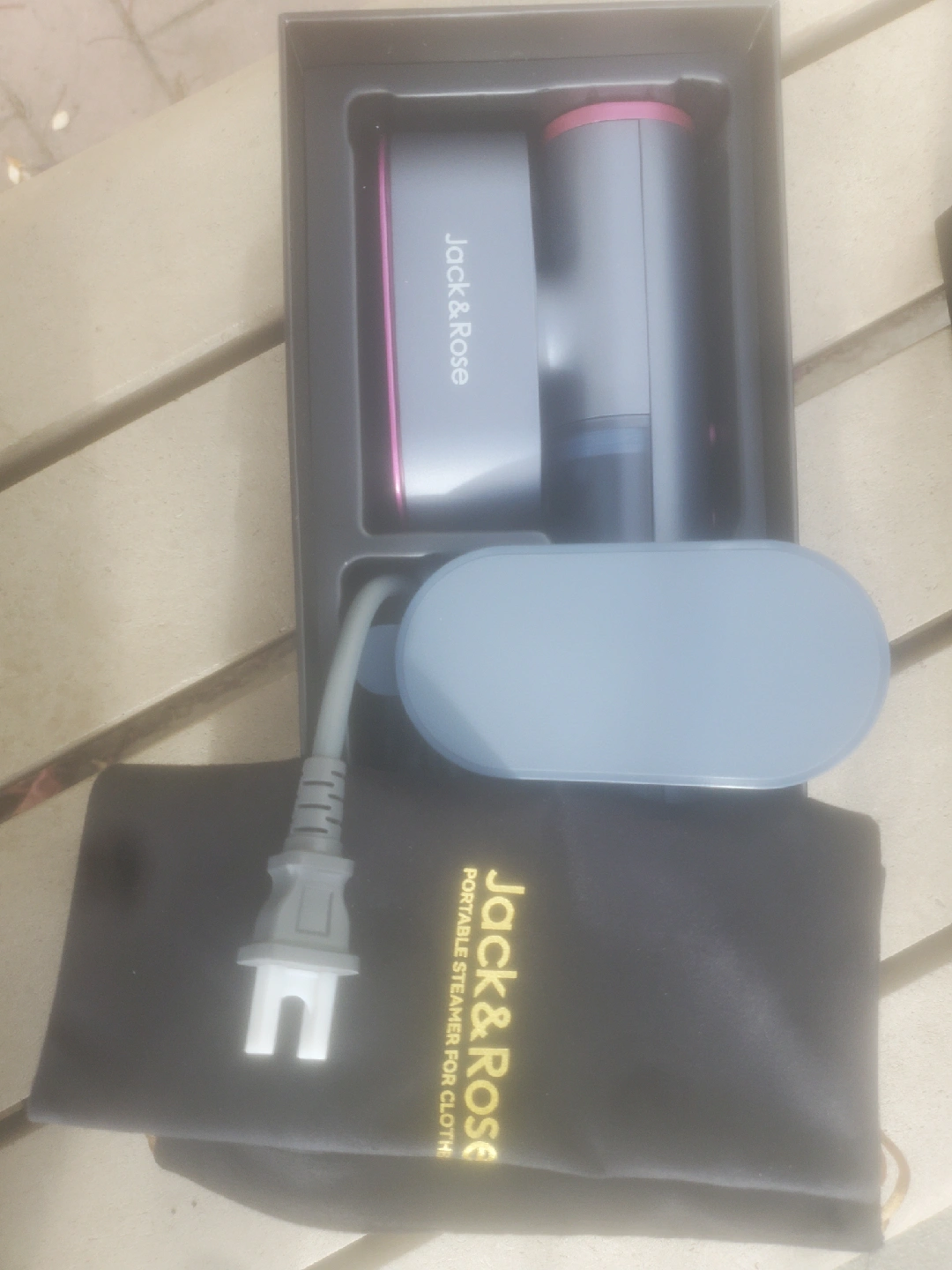 Selling a Jack & Rose portable clothes steamer in excellent condition! It comes with the original box and all included components, including the steamer itself, the water tank, and the fabric brush attachment. It's lightweight and portable, perfect for travel or quick touch-ups at home! Get wrinkle-free clothes in minutes!