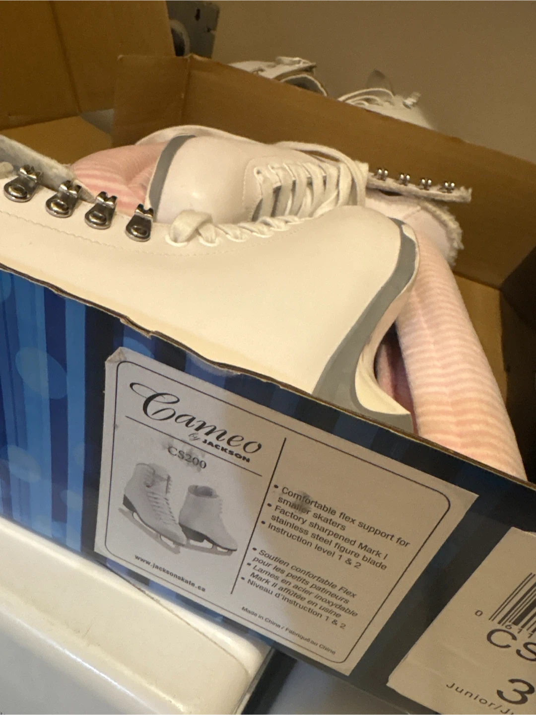 Selling a pair of Jackson CS300 Cameo figure skates. They come with comfortable flex support for smoother skaters and a factory sharpened Mark I stainless steel figure blade. Instruction level is 1 & 2. Comes with the original box