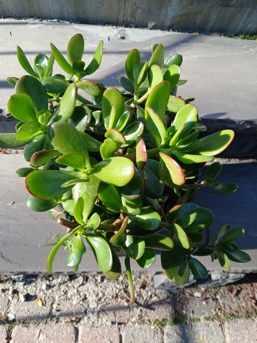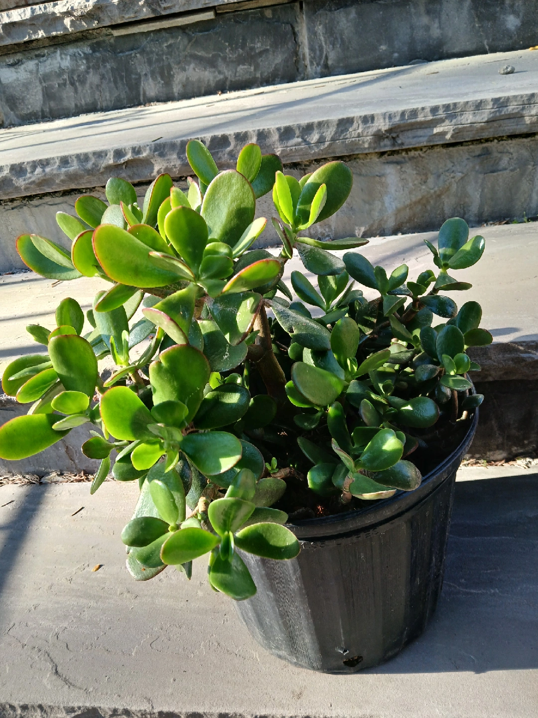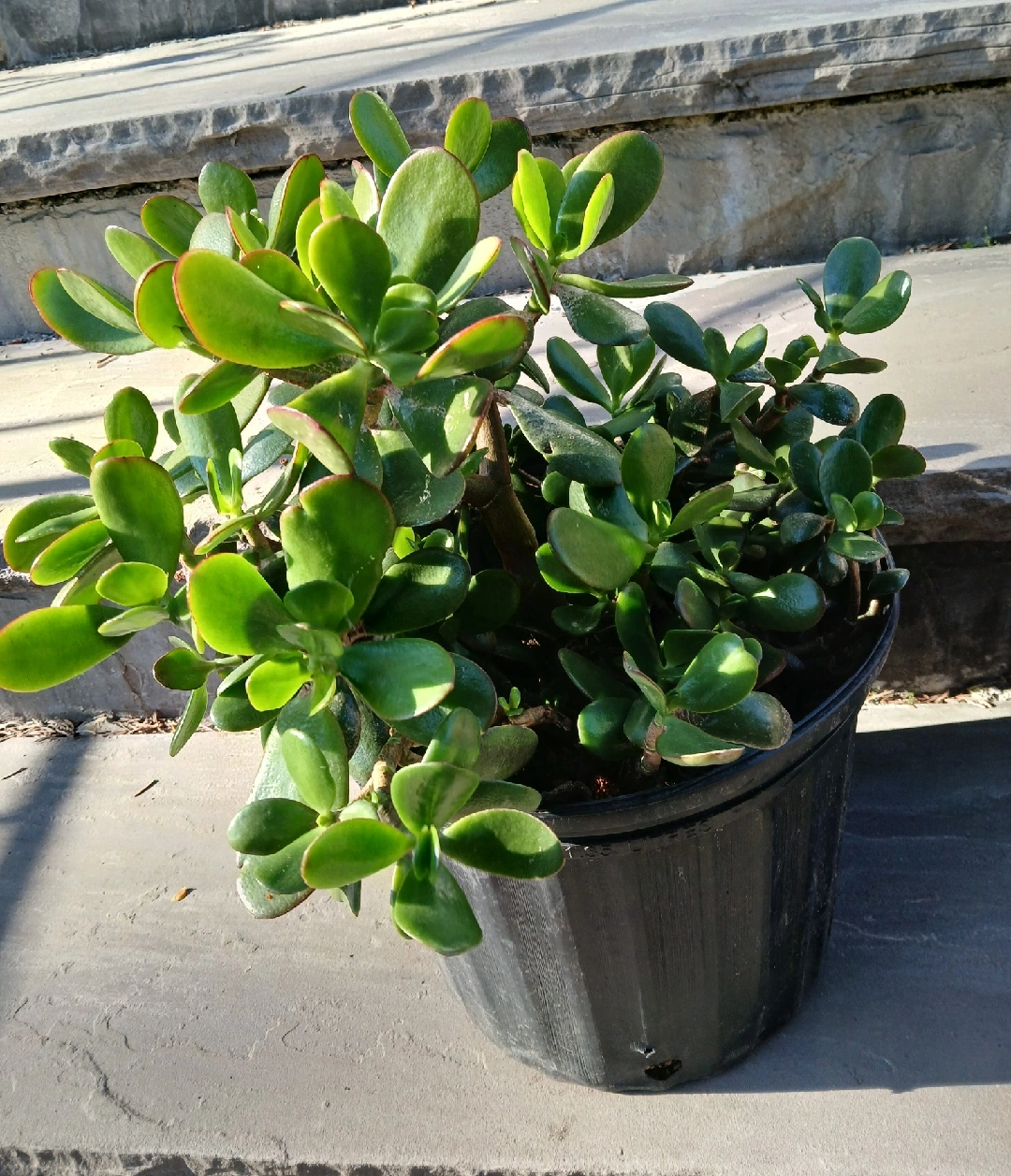 Selling a healthy jade plant in a black plastic pot. It's in great addition to any home or office space and is known for bringing good luck! Easy to care for and adds a touch of greenery to your surroundings