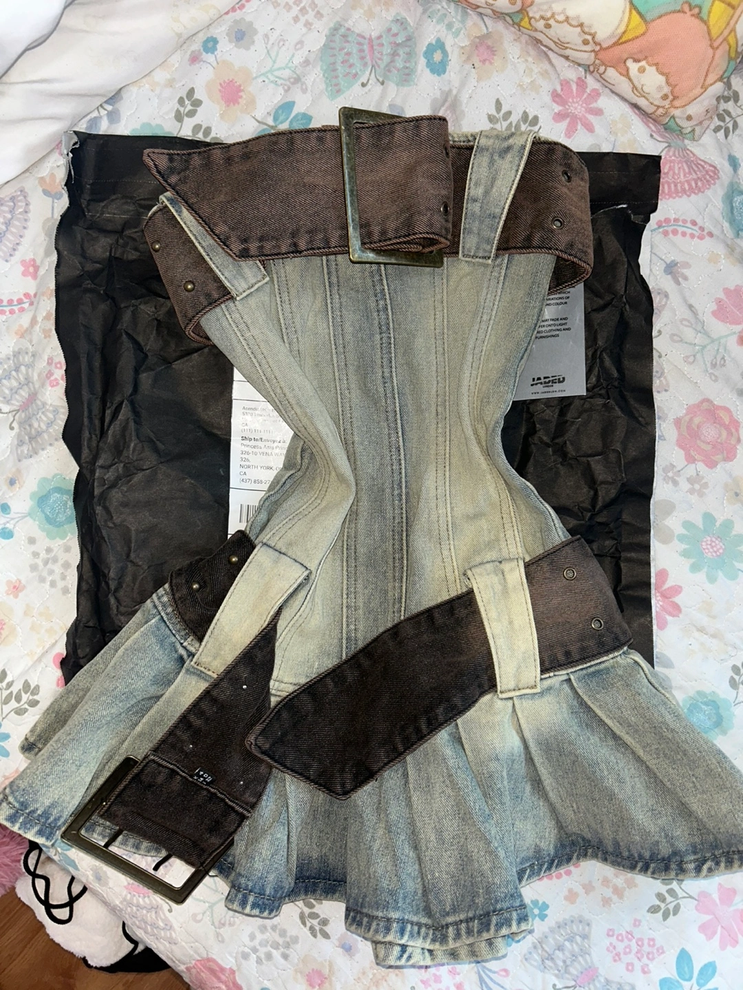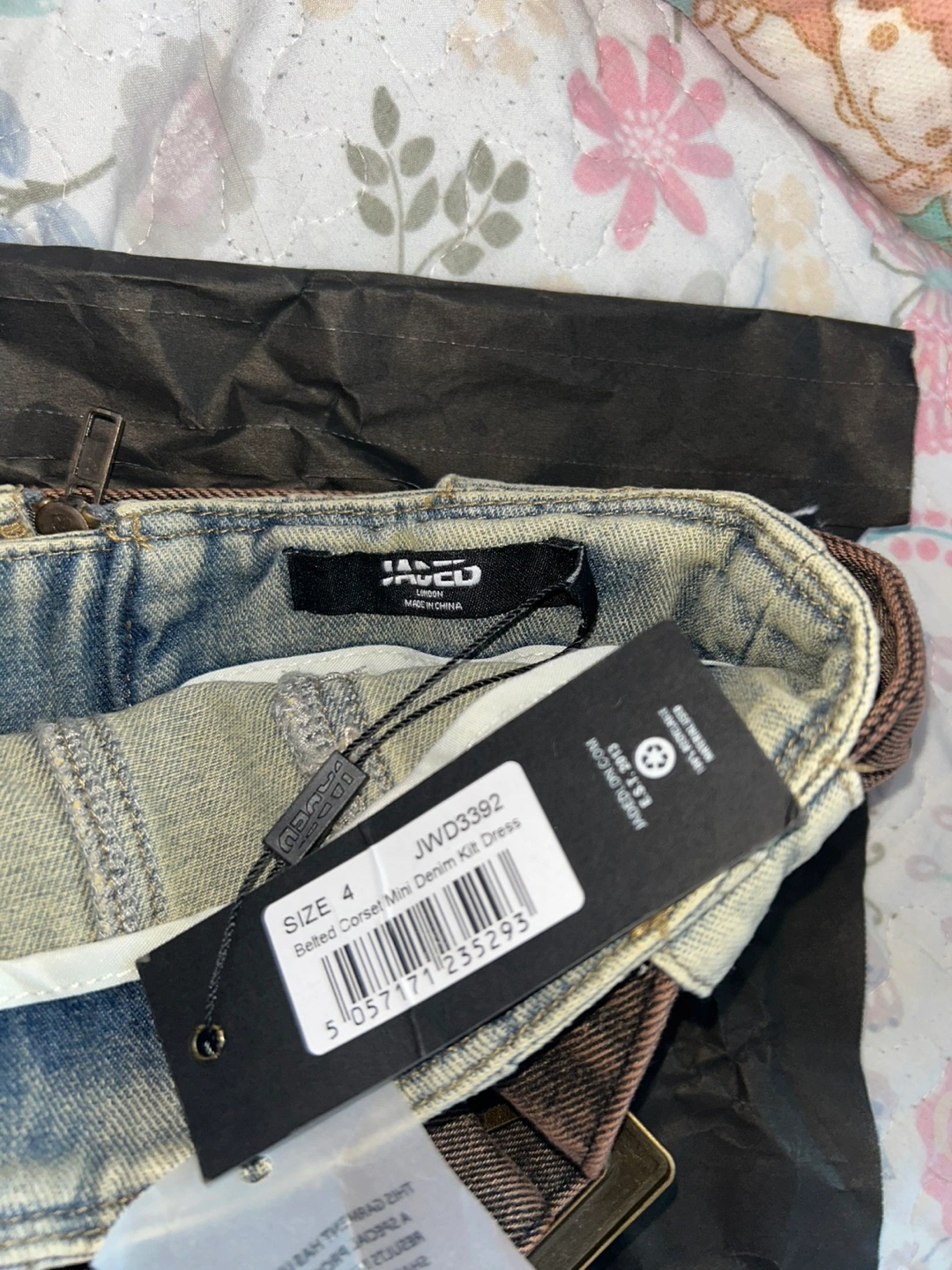 Selling a Brand New Jaded London belted corset mini denim dress in size 4. It's in great condition and ready for a new home! The unique design and denim material make it a standout piece.