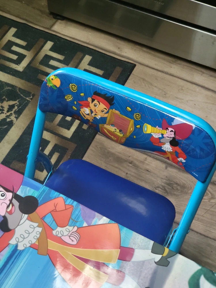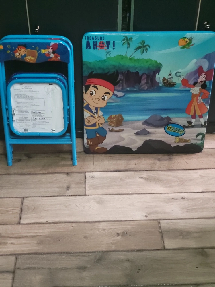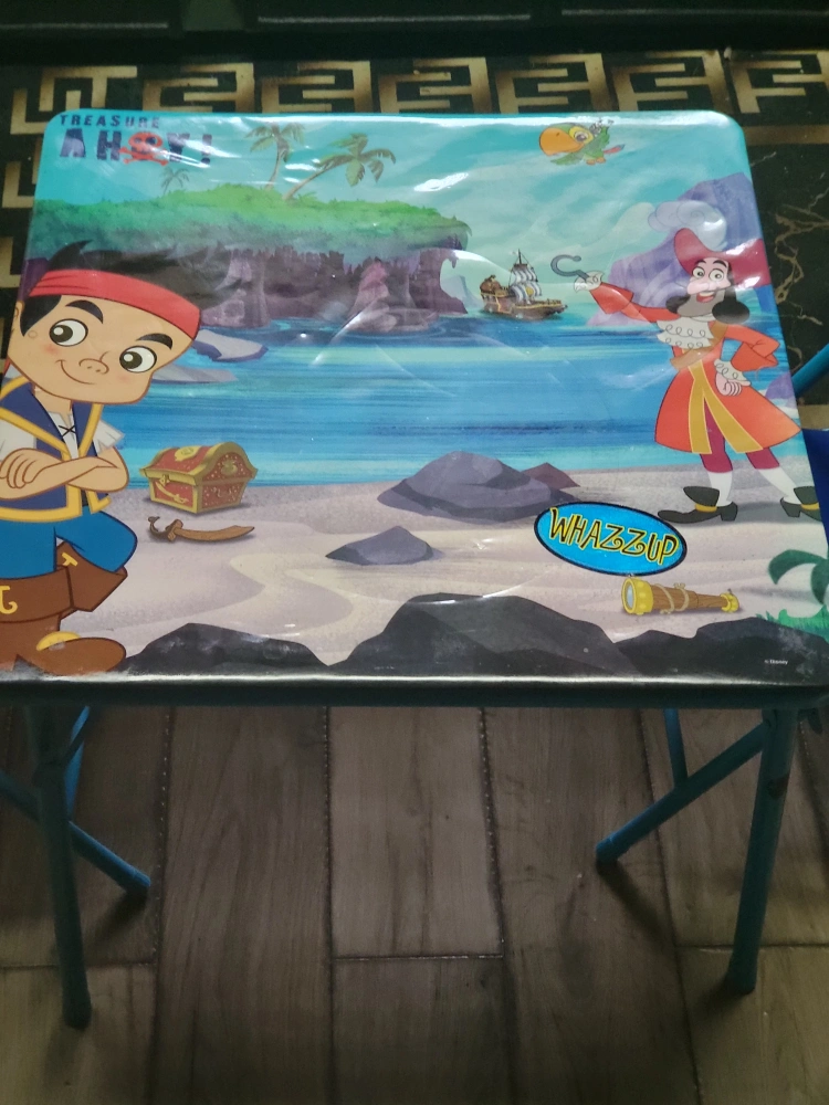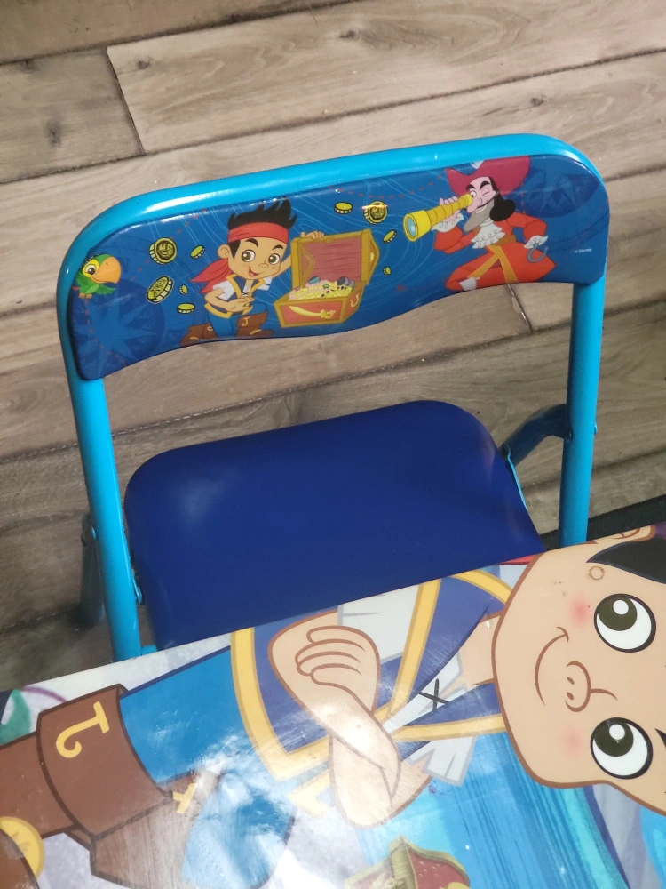 Kids table and chair set featuring Jake and the Neverland Pirates theme. Perfect for play time or snack time!