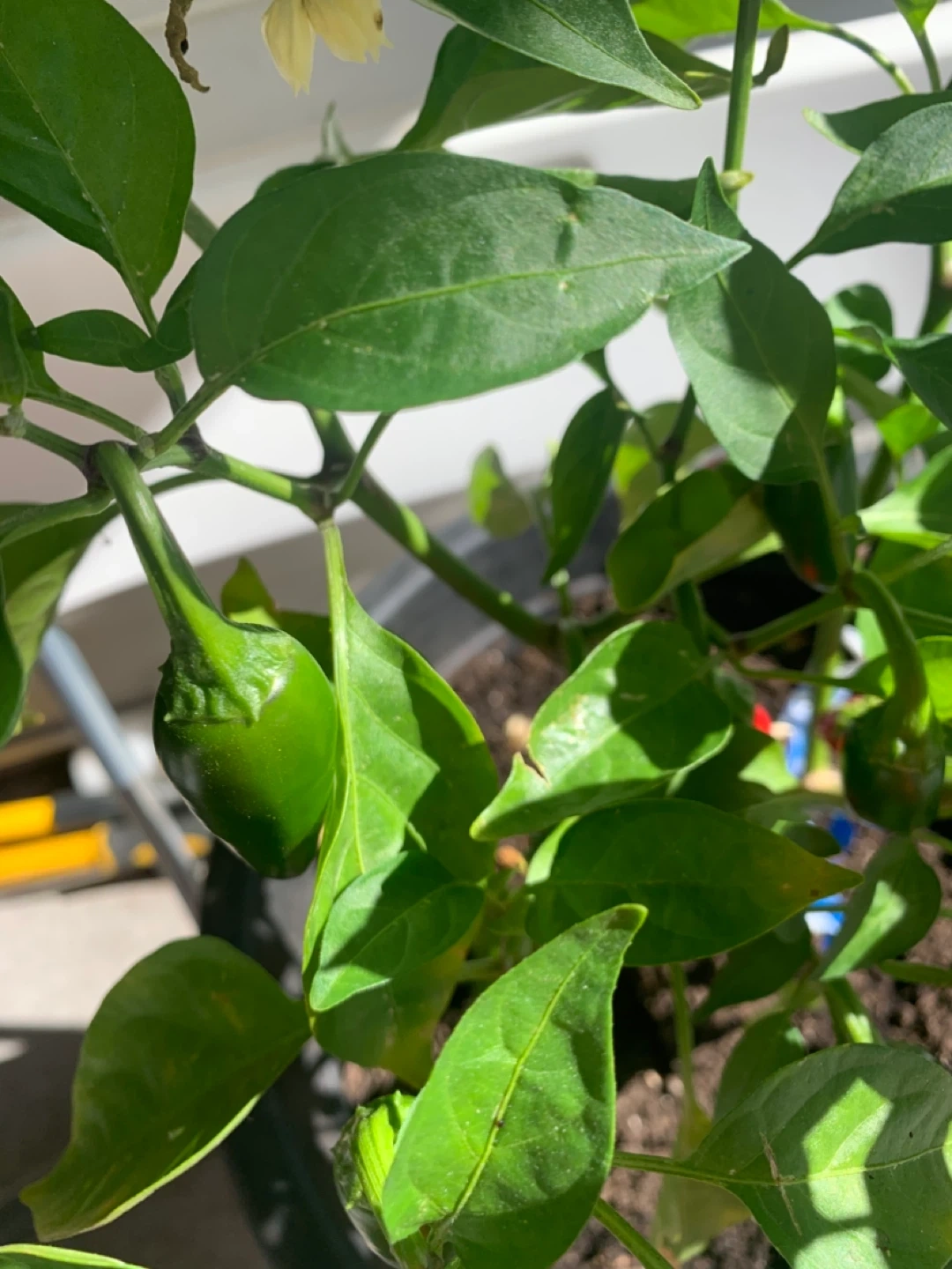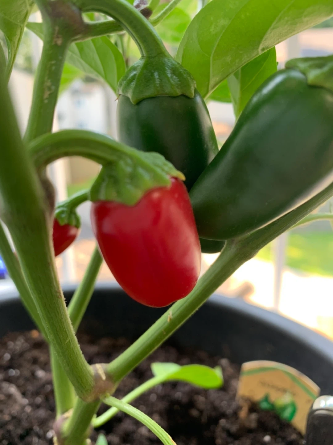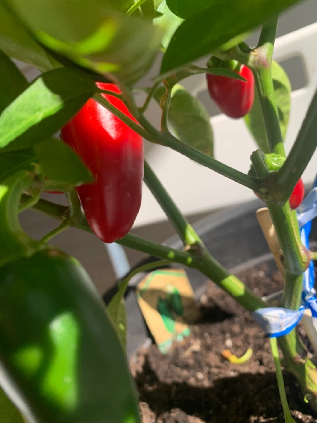 Selling a healthy jalapeno pepper plant in a pot! It's growing well and ready to be transplanted into your garden or a larger container. It even has some flowers already! ready to eat.