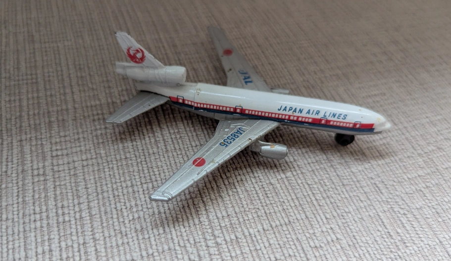 Selling a diecast model airplane of Japan Air Lines (JAL). It's a cute little model, perfect for collectors or kids who love airplanes! It shows some signs of wear.