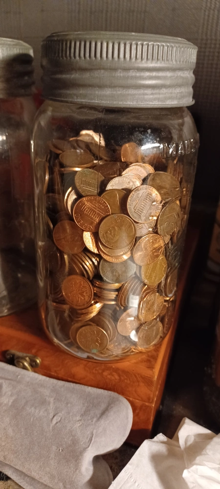 Here's a jar filled with pennies! Great for collectors or anyone looking to start a coin collection.. PLEASE CALL NOT TEXT.... 519 729-5862 415 Victoria st south kitchener