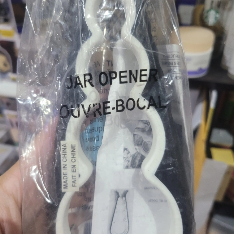A jar opener that has 3 different sizes. A game changer to get those tight lids off without hurting your self. Fits most lids. Hand wash. 8 3/4" x 3 1/2" They originally retailed here for $9.99 plus tax I have 2 available $6.00
