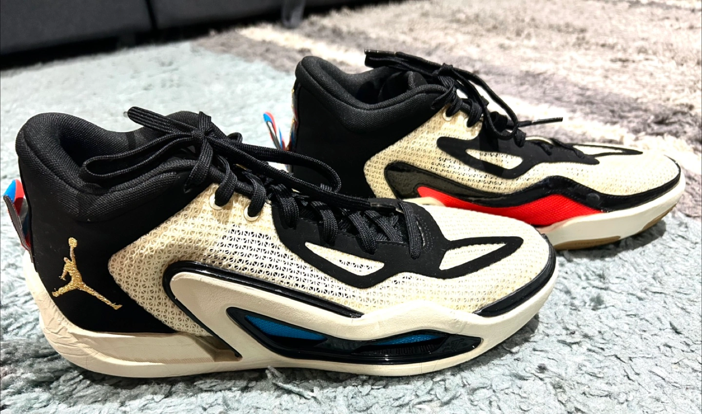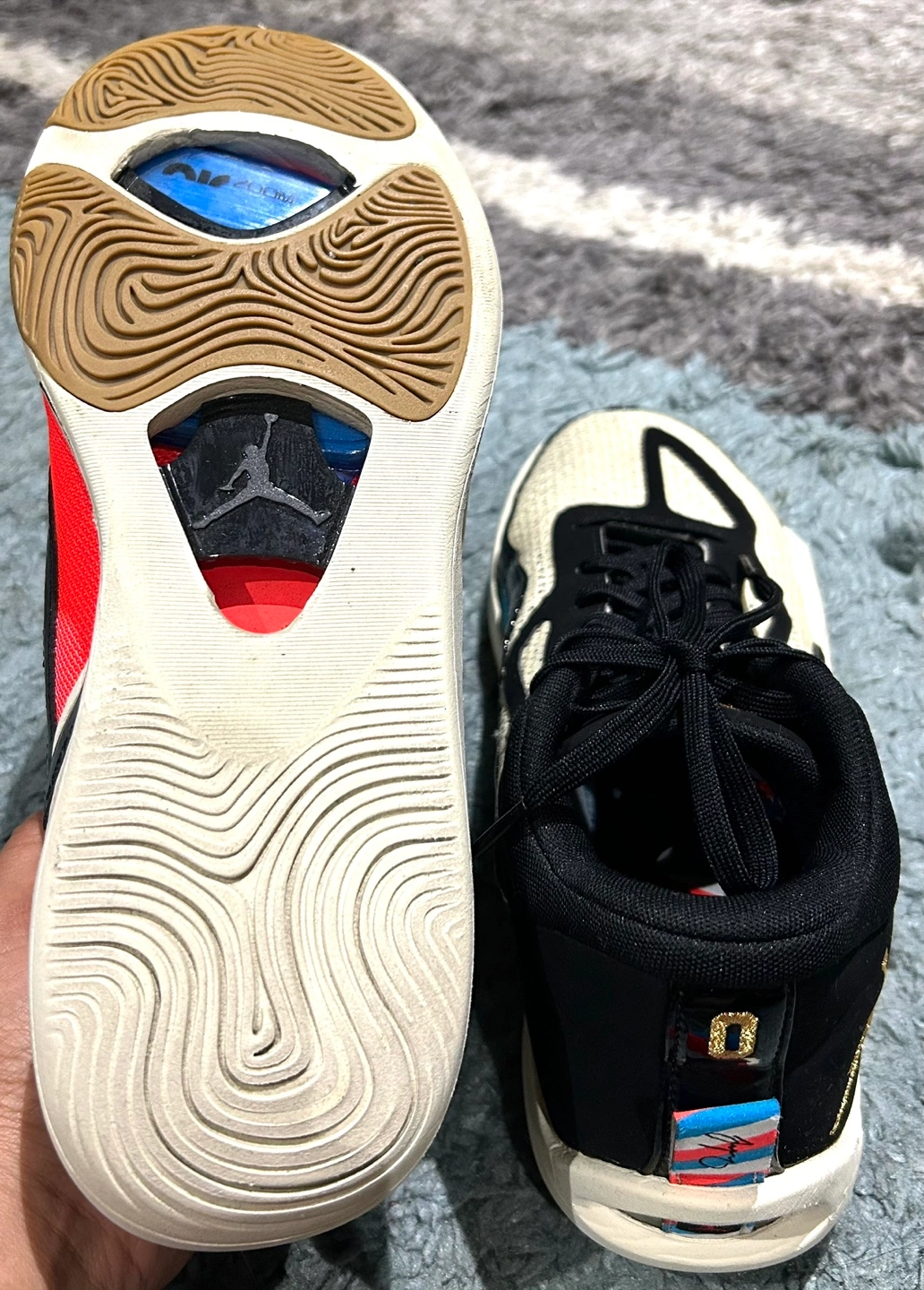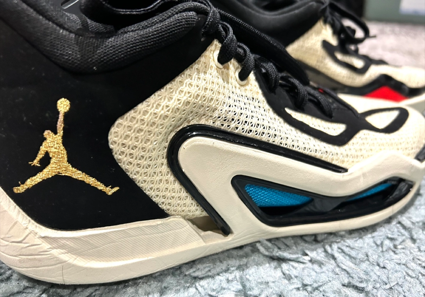 Selling a pair of Jordan Deuce basketball shoes. They are in great condition and feature a unique design with gold accents and signature details. Perfect for on the court or casual wear! *Got the shoes from Taiwan* *Very unique design* *In very good condition*
