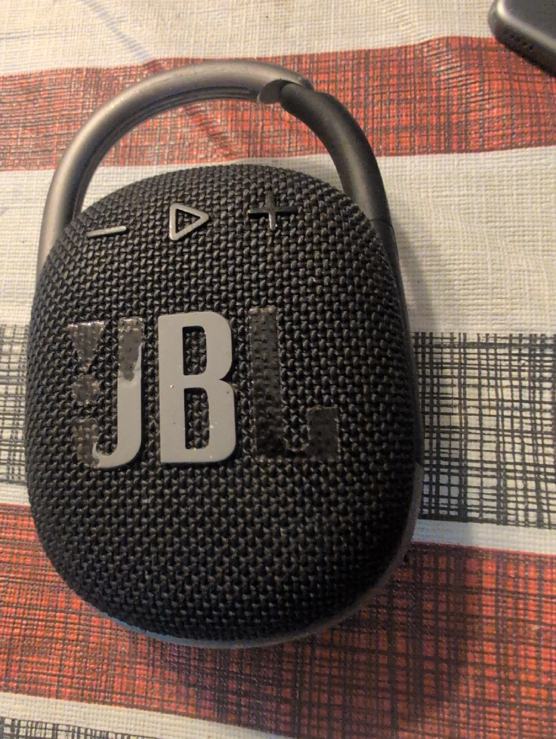 Selling a JBL Clip 4 portable Bluetooth speaker in black! It's perfect for on-the-go listening and clips easily onto bags or belts. It is in used condition.