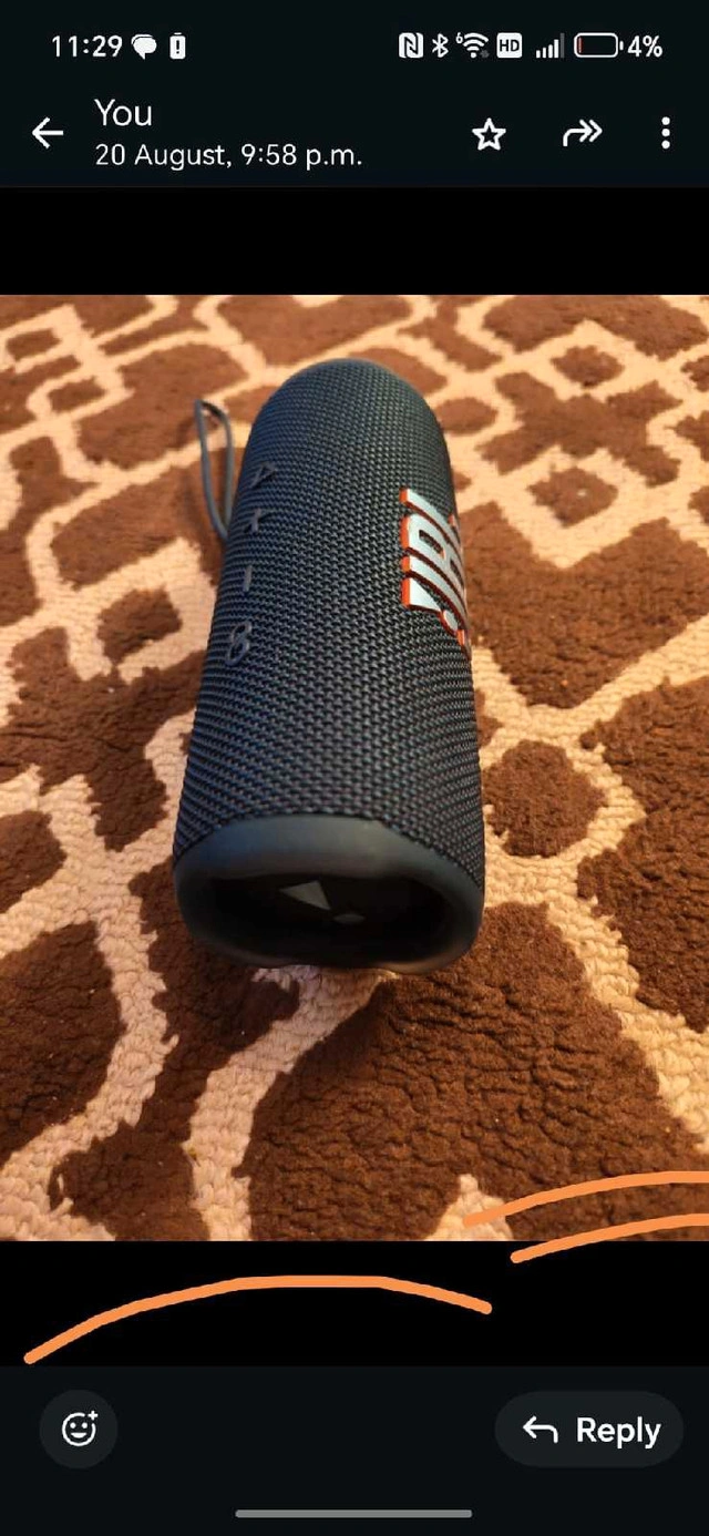 The JBL Portable Bluetooth Speaker delivers powerful, clear sound with deep bass in a compact, durable design. It features wireless Bluetooth connectivity, long battery life, and a water-resistant body, making it perfect for outdoor use, travel, and parties. Great condition no issues.