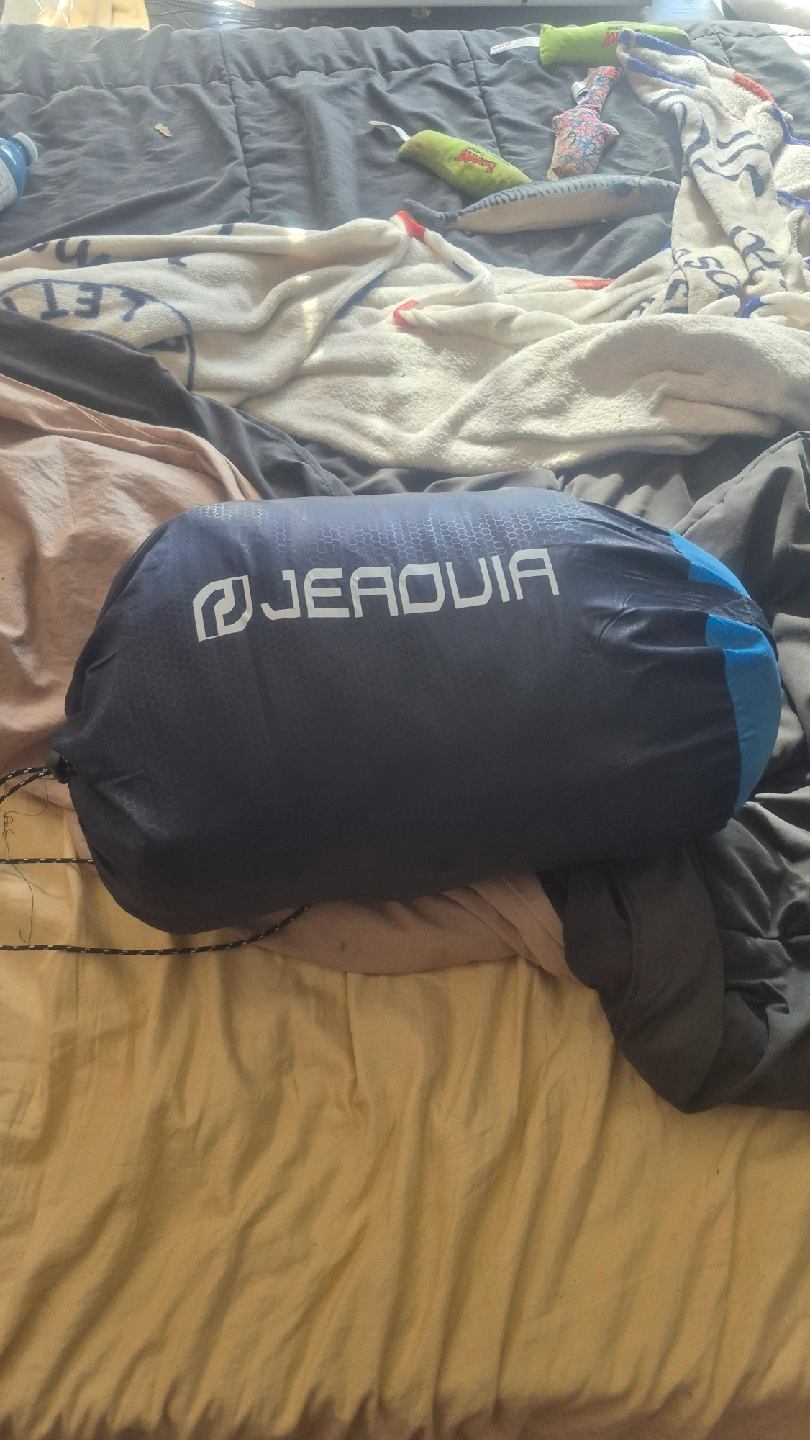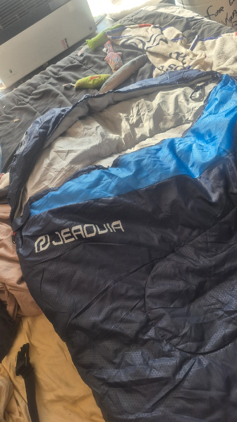 Selling a JeaoUia sleeping bag in blue. It's in good condition and ready for your next camping trip!