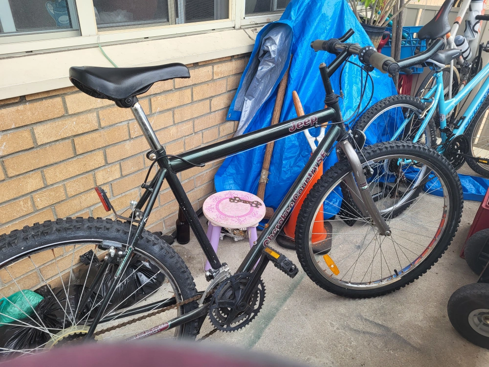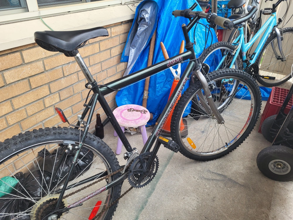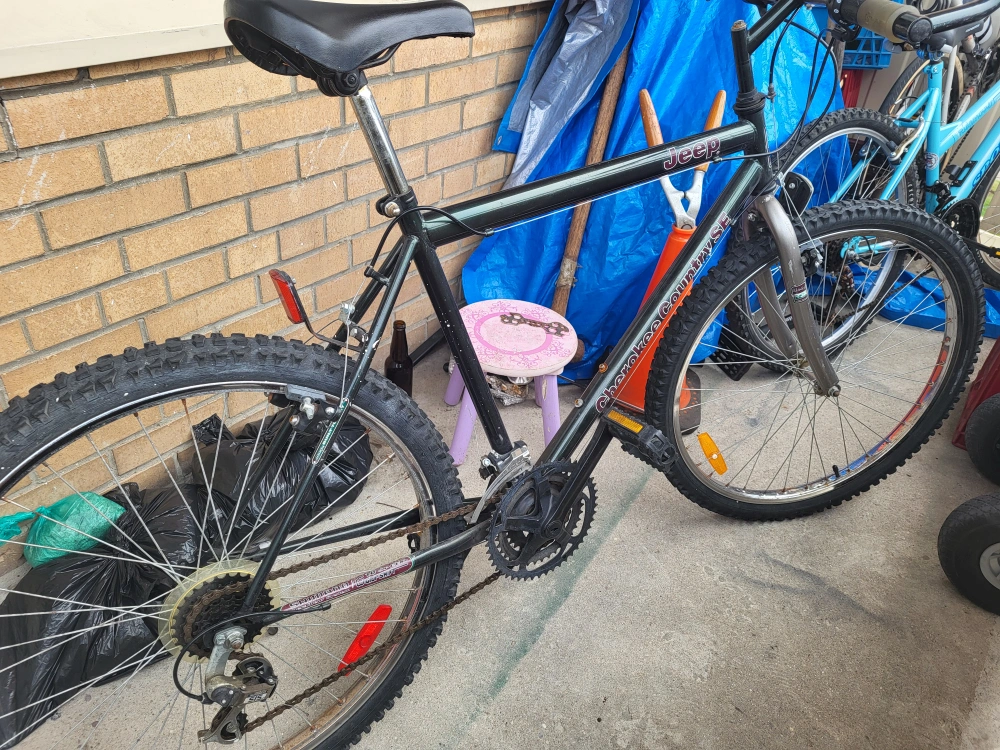 Selling a Jeep Cherokee Country mountain bike. It's an 18-speed bike, perfect for trails or getting around town. It has Shimano gears.