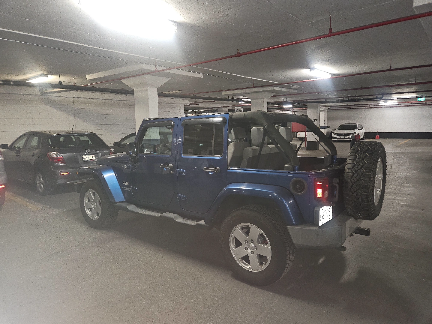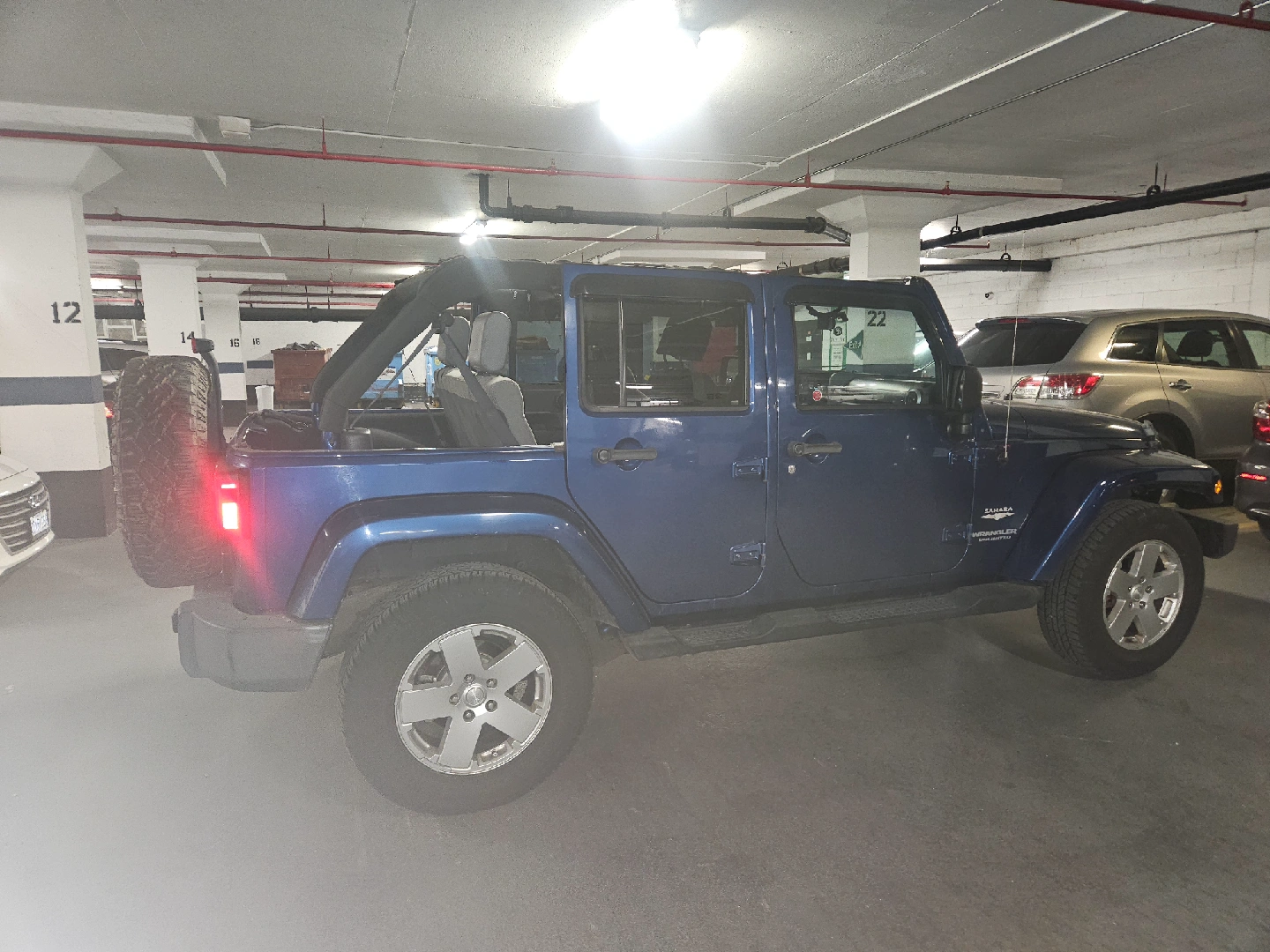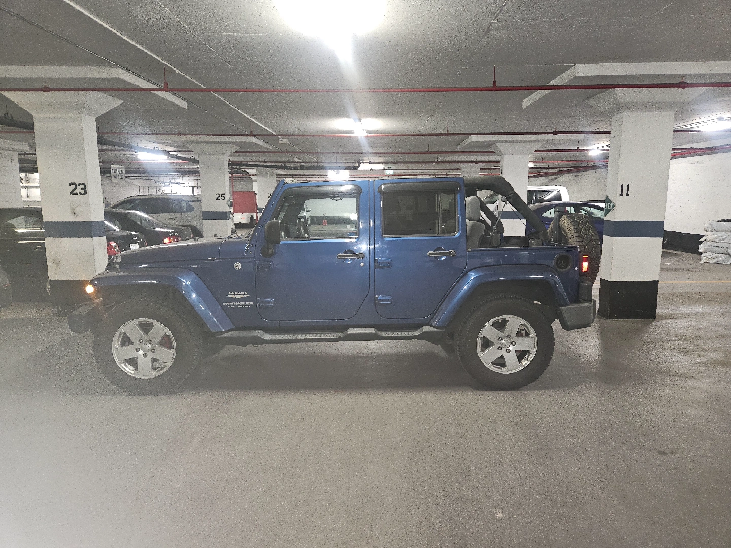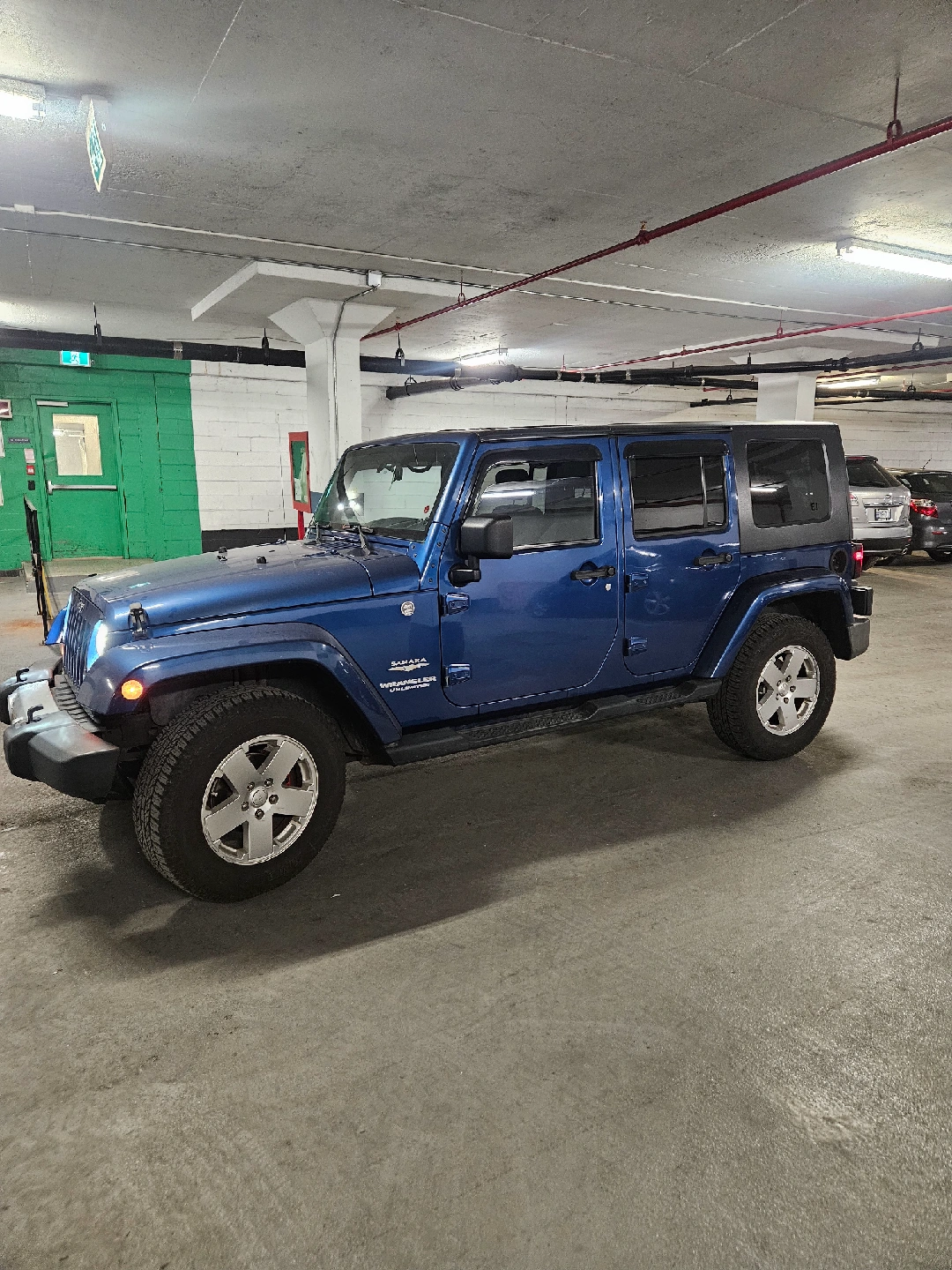 Selling a blue Jeep Wrangler Unlimited Sahara. It's in good condition and ready for adventure! Great for summer with the top down.