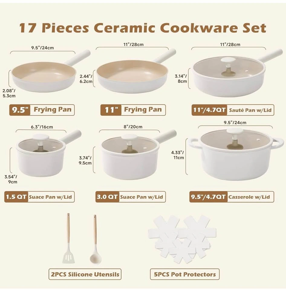Saving Space Design: Neatly stack all the pots and pans, and place the pot protector between each pot to prevent scratches, saving 70% of the space compared to regular pots, and can be easily placed in the cabinet. Non-Stick Appeal: The pans feature a non-stick coating, which makes cooking and cleaning a breeze. Food slides right off, minimizing the need for excess oil and making post-meal cleanup a snap. Pick up - Courtice Please check my other listings!