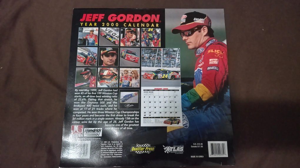 Selling a Jeff Gordon Year 2000 calendar. It's in good condition and features images from his racing career. A great collectible for any NASCAR or Jeff Gordon fan!