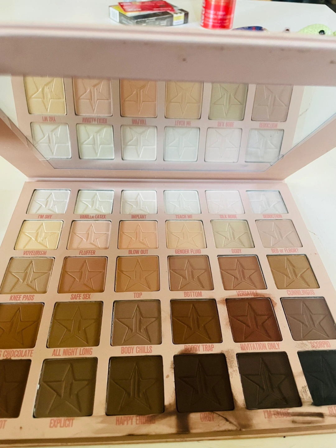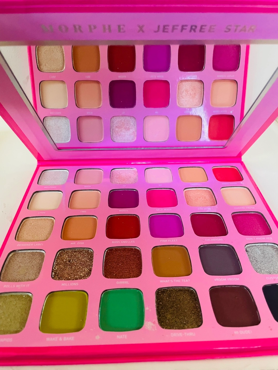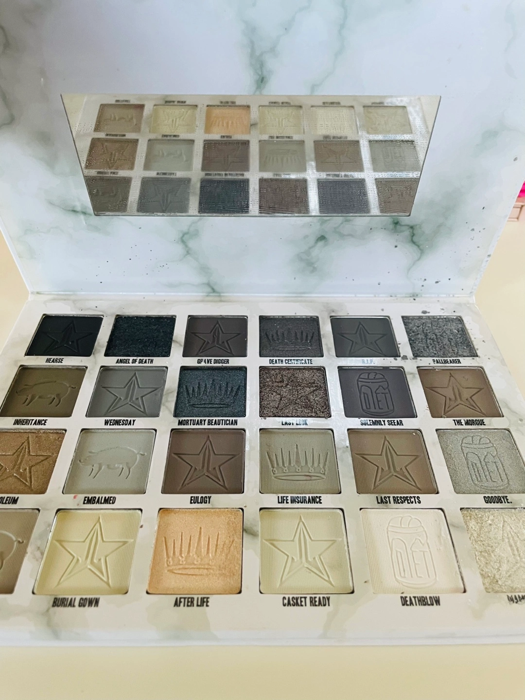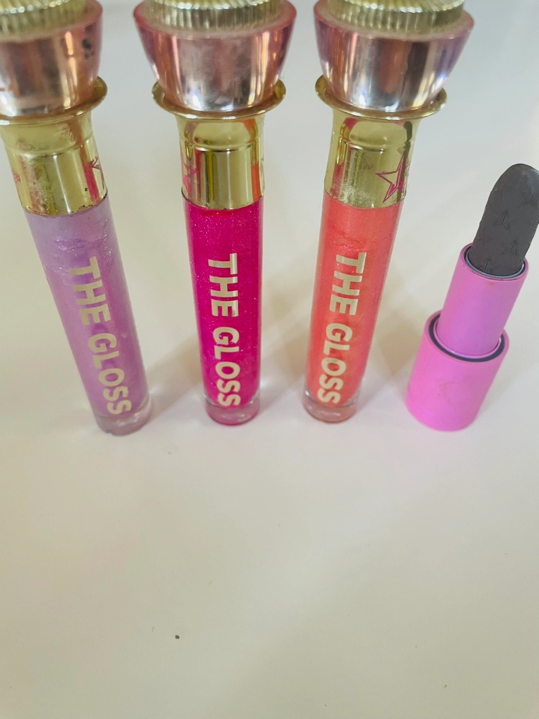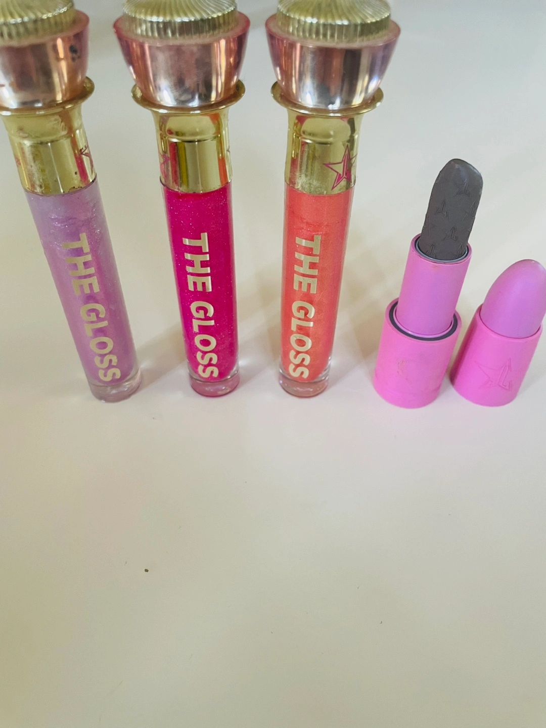 Selling three eyeshadow palettes: - Morphe X Jeffree Star palette - Jeffree Star Cosmetics palette creamation -Jeffree Star Cosmetics pallet Orgy All palettes have a variety of shades and colours to create different looks! Gently used with many pans untouched The gloss in 3 shades as well as lightly swatched bullet lip stick in shade grave digger.