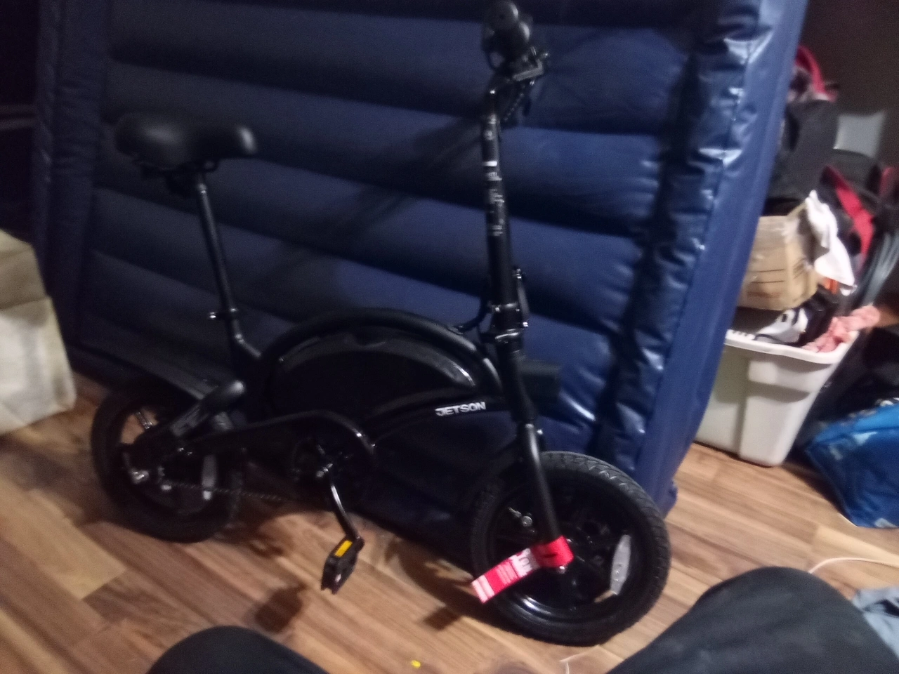 Black electric bike with a folding frame. Includes charger. It is about 20 inches in height. The bike is in new condition. never dr iven call Dan 780-934-0954